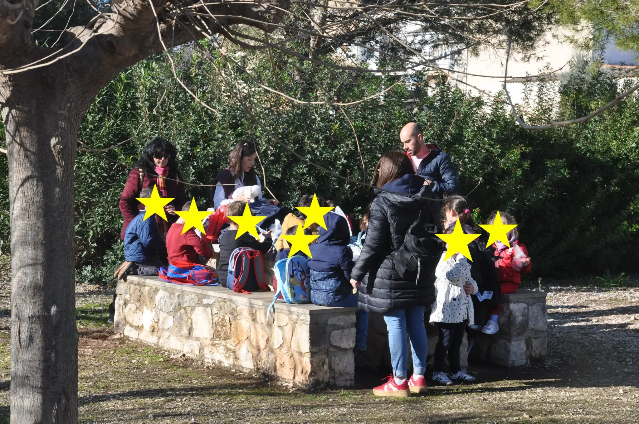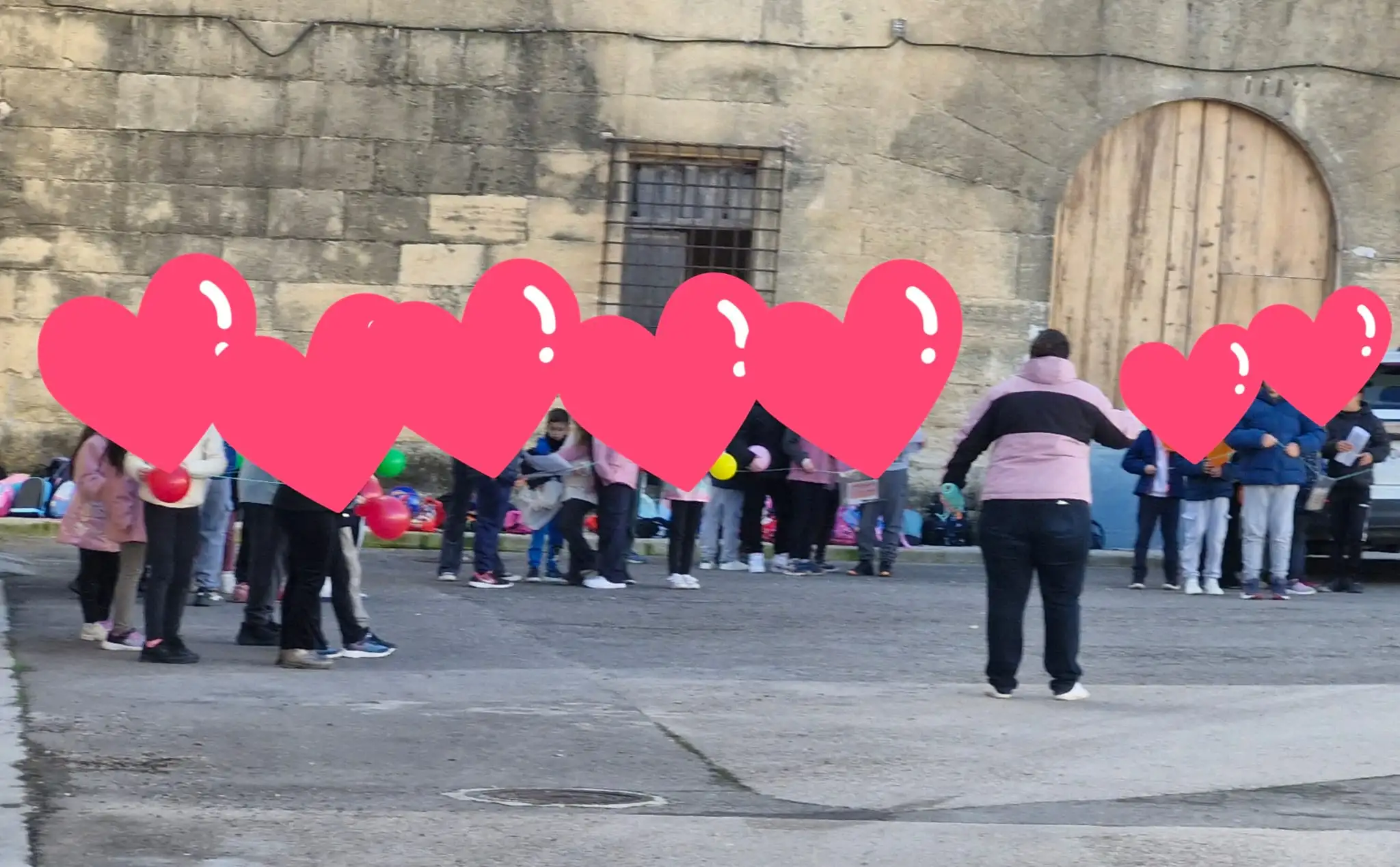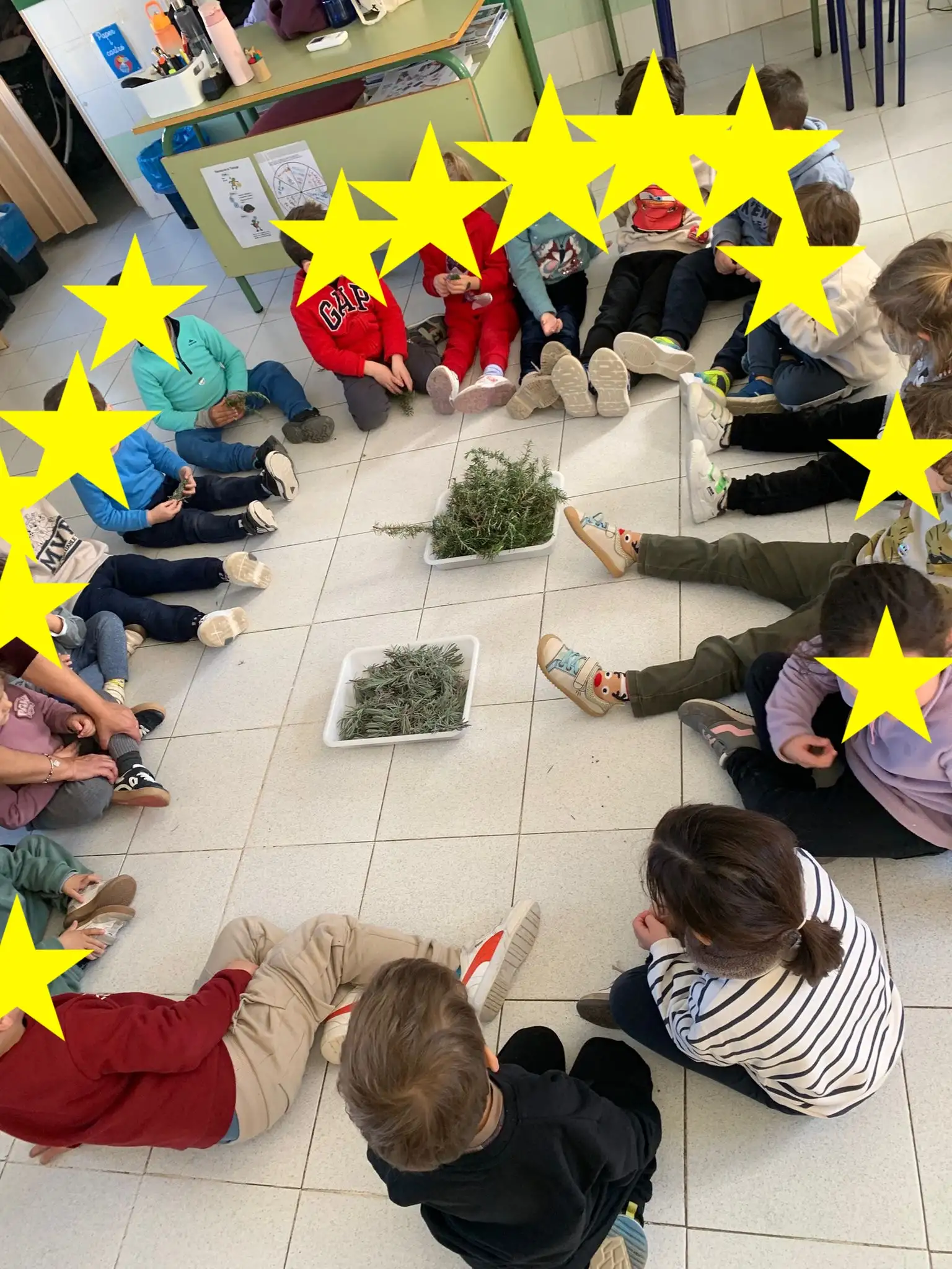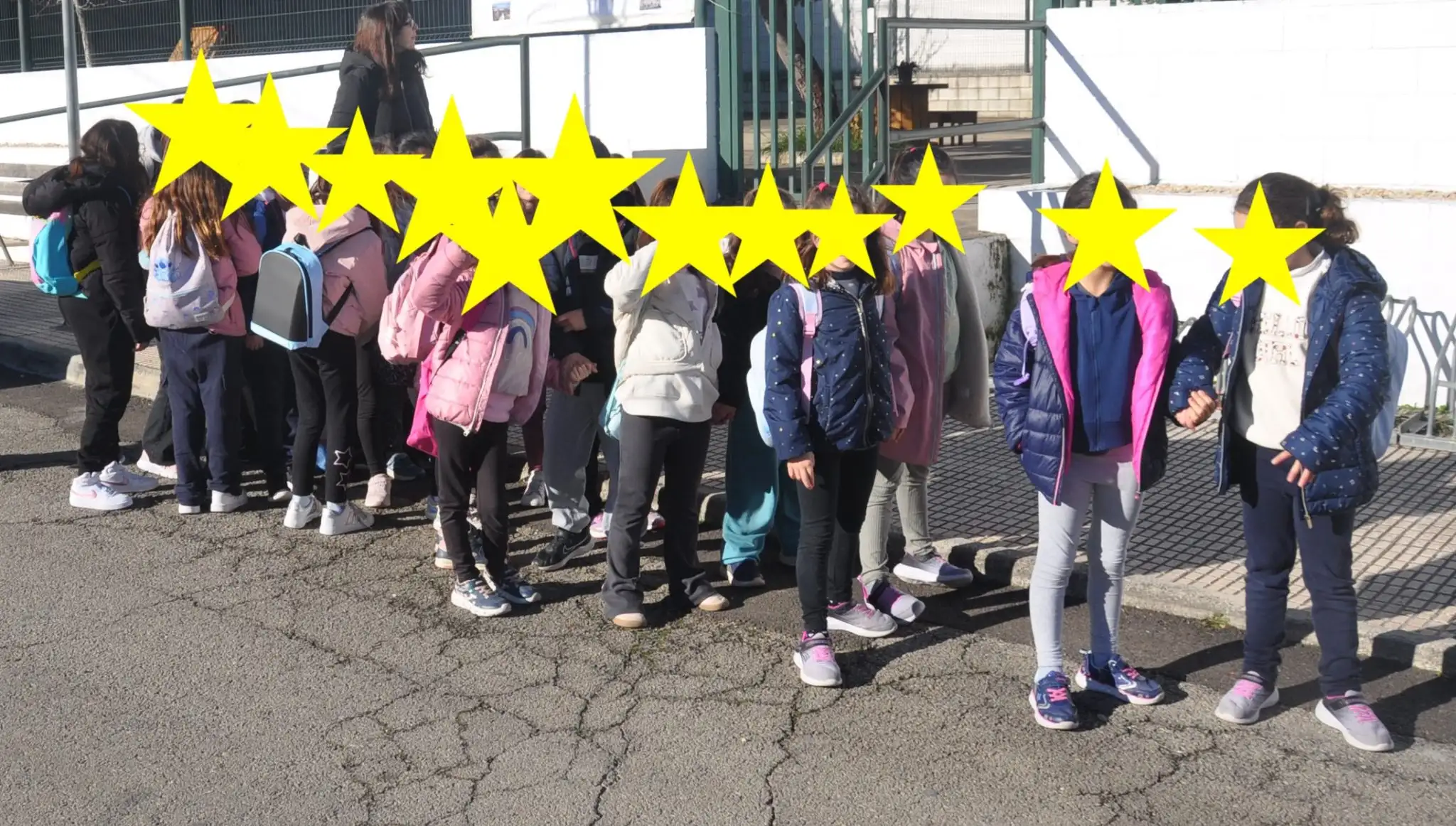 En la plaça del poble, ens vam distribuir entre primaria i infantil.