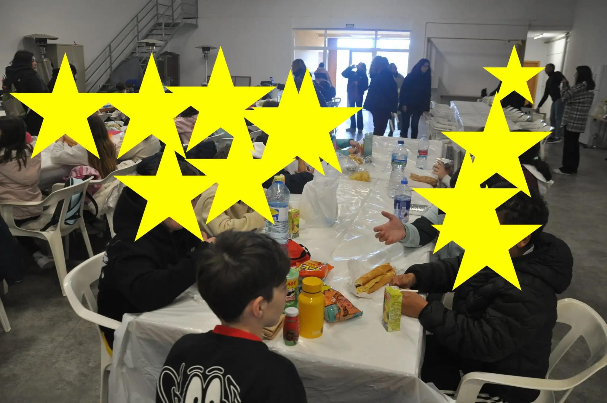 Quan es va acabar, dinarem al pavelló de Benissuera i jugarem amb Mari Carmen Andres i Hector amb una animació lectora.