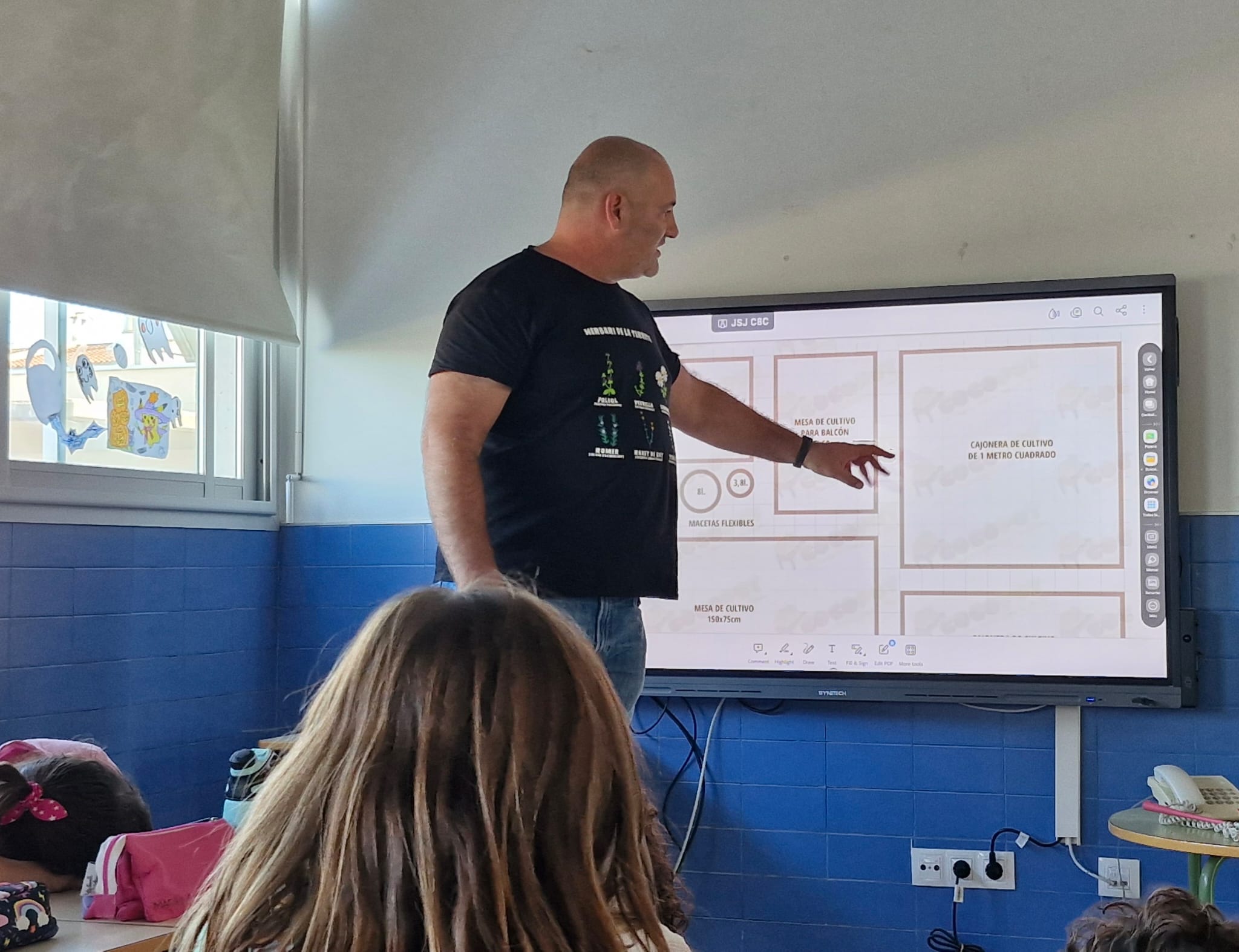 En primer lloc, Rafel, mestre del CRA, ens ha explicat en què consisteix el projecte i el calendari de sembres i collites.