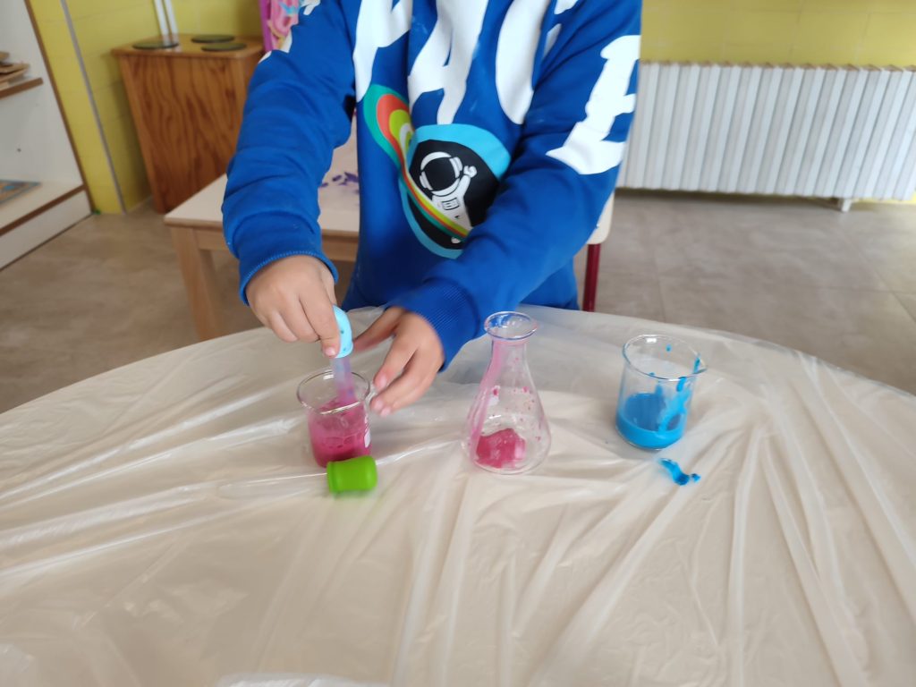 Com que a l´alumnat li encanta investigar, manipular, mesclar…Hem treballat els colors, les mescles i l´autonomia amb la neteja de mans i utensilis utilitzats.