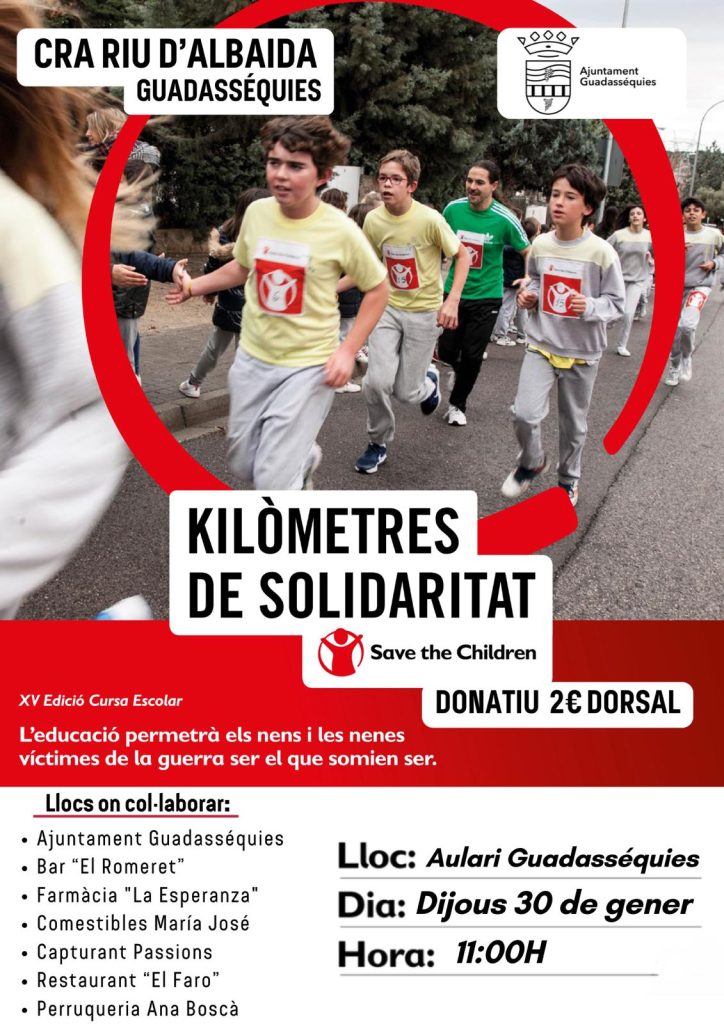 L´ajuntament de Guadassèquies junt amb Carreres Populars de la Vall d´Albaida i el Cra Riu Albaida, organitzem la XV edició de la Cursa Escolar Solidaria.