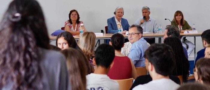 A continuació, el col·loqui de l’alumnat amb els membres del Jurat, protagonitzat pel Premi Nobel Jules Hoffmann i les dos premiades Jaume I, Prof. Maria Vallet i Prof. Ana Traveset.