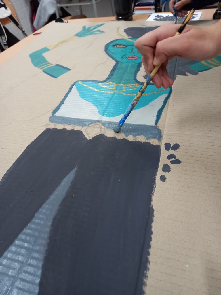 L’alumnat del Laboratori d’Arts Escèniques elabora el personatge de l’Encantada a mida real.