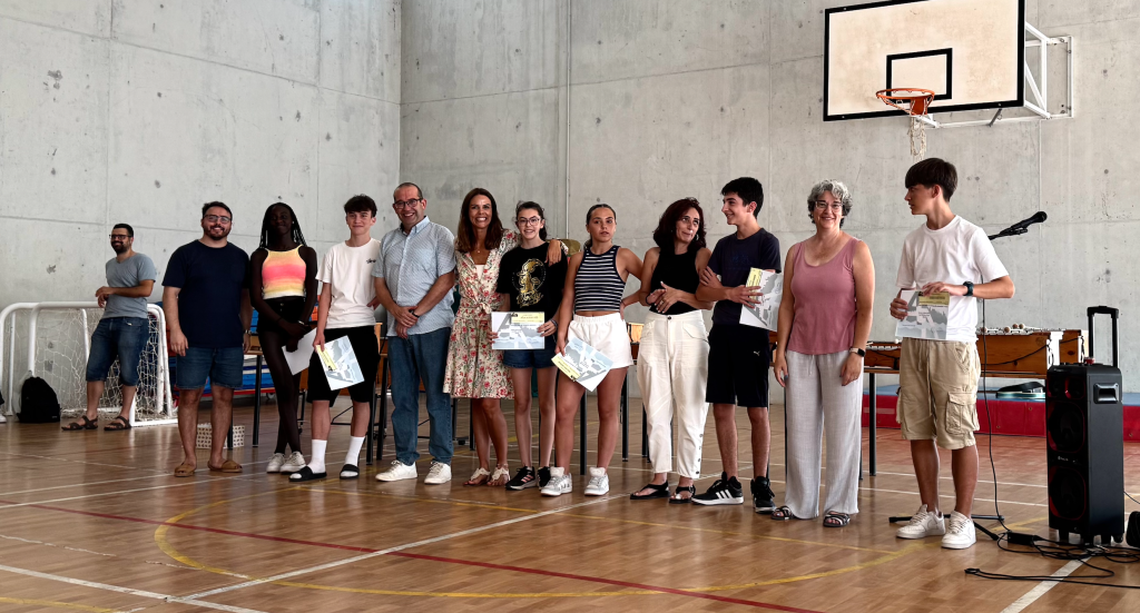 Els diferents membres de l’equip docent distribuïts per departaments didàctics van fer lliurament de diplomes i obsequis als guanyadors i guanyadores i classificats en segona i tercera posició de les diferents modalitats. Enguany van haver-hi molts premis gràcies a l’aportació econòmica de Xelo Navarro, la vídua d’Alfred Ayza i la nostra benefactora, sense ella els premis no serien possibles. El departament de Matemàtiques també va fer lliurament d’uns detalls als millor classificats i classificades de les proves Cangur d’enguany.