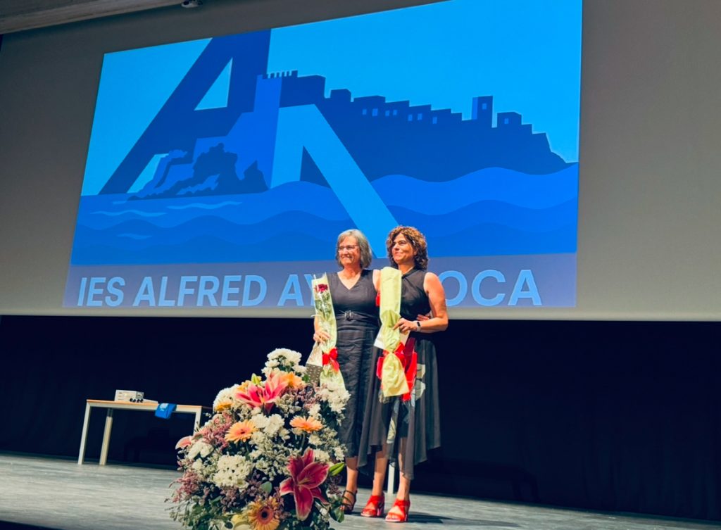 Aquest any l’acte va ser una mica diferent perquè tot l’alumnat i l’equip docent vam voler donar les gràcies a Maite Simó Mitjavila que durant dèneu anys ha estat la capitana del vaixell IES Alfred Ayza. Maite deixa el càrrec i l’institut el curs vinent per a seguir treballant com a docent en un altre institut de la comarca. A l’acte també li vam voler mostrar un agraïment col·lectiu: pel seu treball com a docent, per tenir tanta paciència i perquè és una professional de l’alçada d’un campanar.