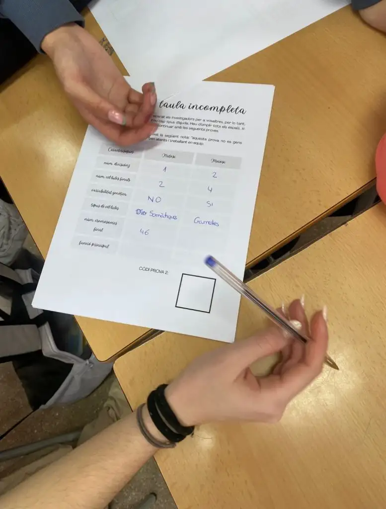 Los grupos han desarrollado propuestas muy diversas: desde juegos de preguntas y recorrido, hasta juegos de cartas y dinámicas manipulativas para reconstruir fases de la división celular. Además, uno de los equipos ha creado también uno escapo room científico, en el cual los compañeros tenían que resolver diferentes pruebas relacionadas con la genética y la división celular para poder completar el reto final.