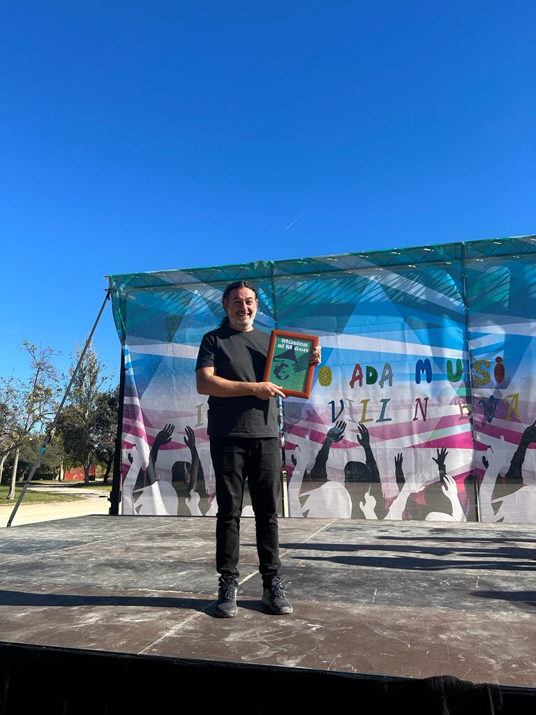 Mestre de música del centre ensenyant el quadre en record de l’excel·lent actuació del nostre alumnat de 4t de primària, en la Trobada musical dels col·legis de Mislata, celebrada el 24/11/2023, amb motiu de Santa Cecília. En el següent enllaç poden vore un vídeo sobre l’acte:
