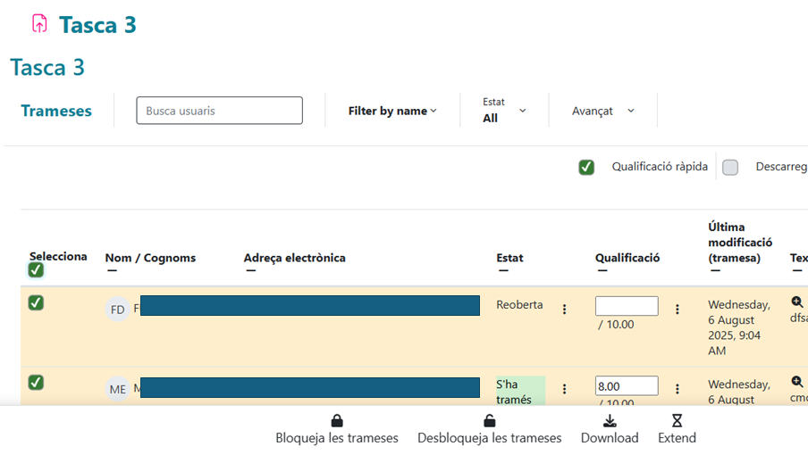 Hacer clic en el botón de edición de la rúbrica, donde puedes hacer modificaciones si hace falta, y confirma que quieres utilizar la rúbrica haciendo clic en el botón «Guarda la rúbrica y hazla efectiva».