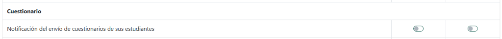 En el perfil del profesorado se ha activado una nueva notificación que permite avisar al docente cada vez que su alumnado responde un cuestionario de sus aulas virtuales. Por defecto, no se recibe ninguna notificación. Si lo deseas, puedes habilitarlas entrando en la configuración de tu perfil, en «Preferencias > Preferencias de las notificaciones».