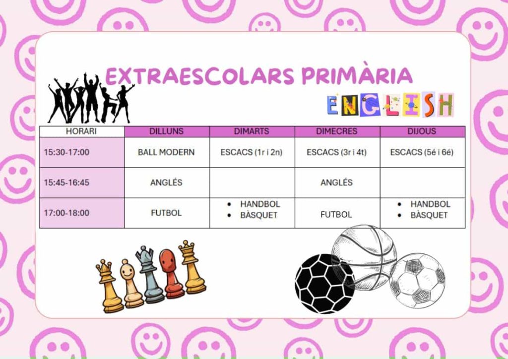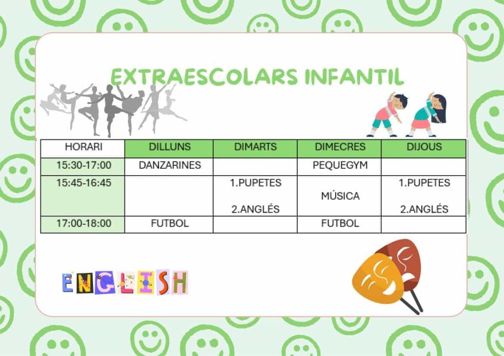 Hola famílies, al mes d’octubre comencem amb les activitats extraescolars de 15:30h a 17h.