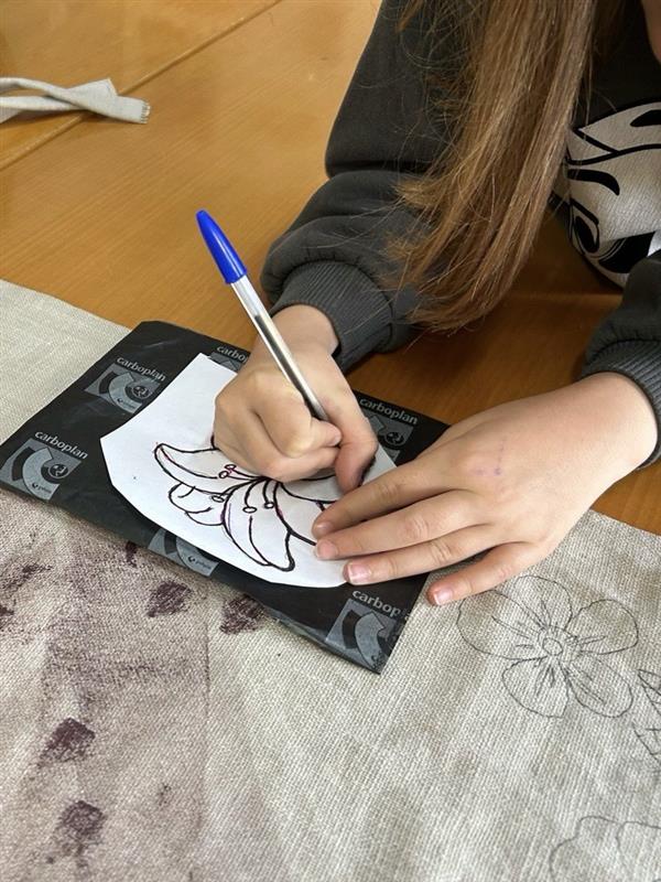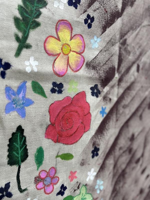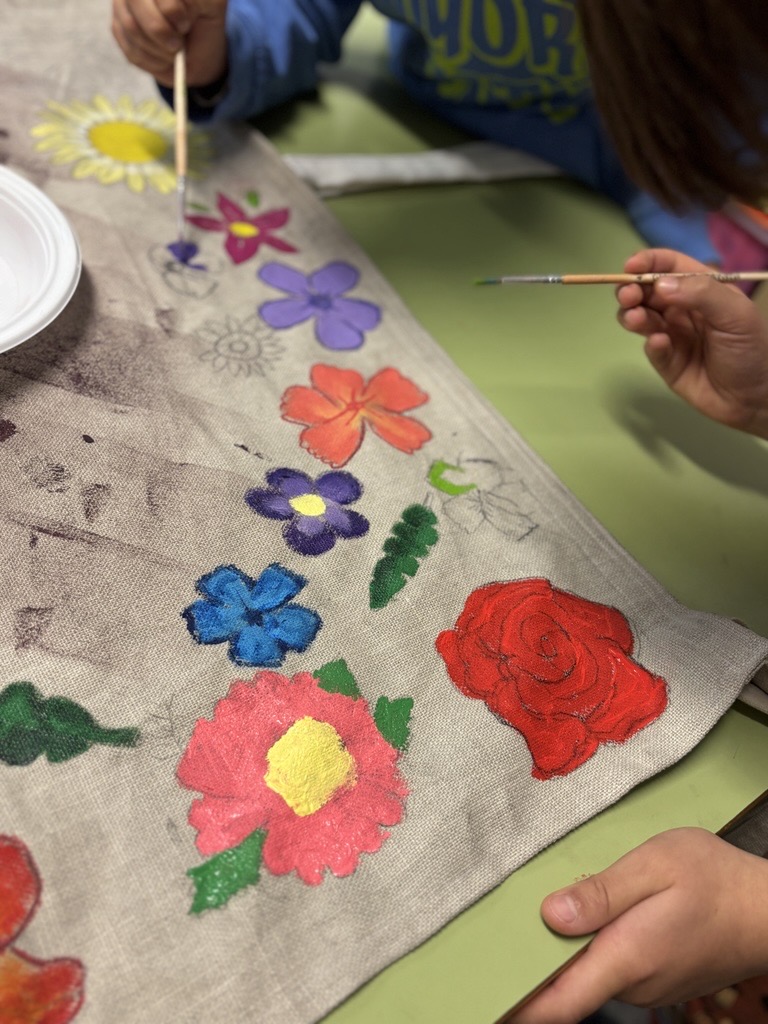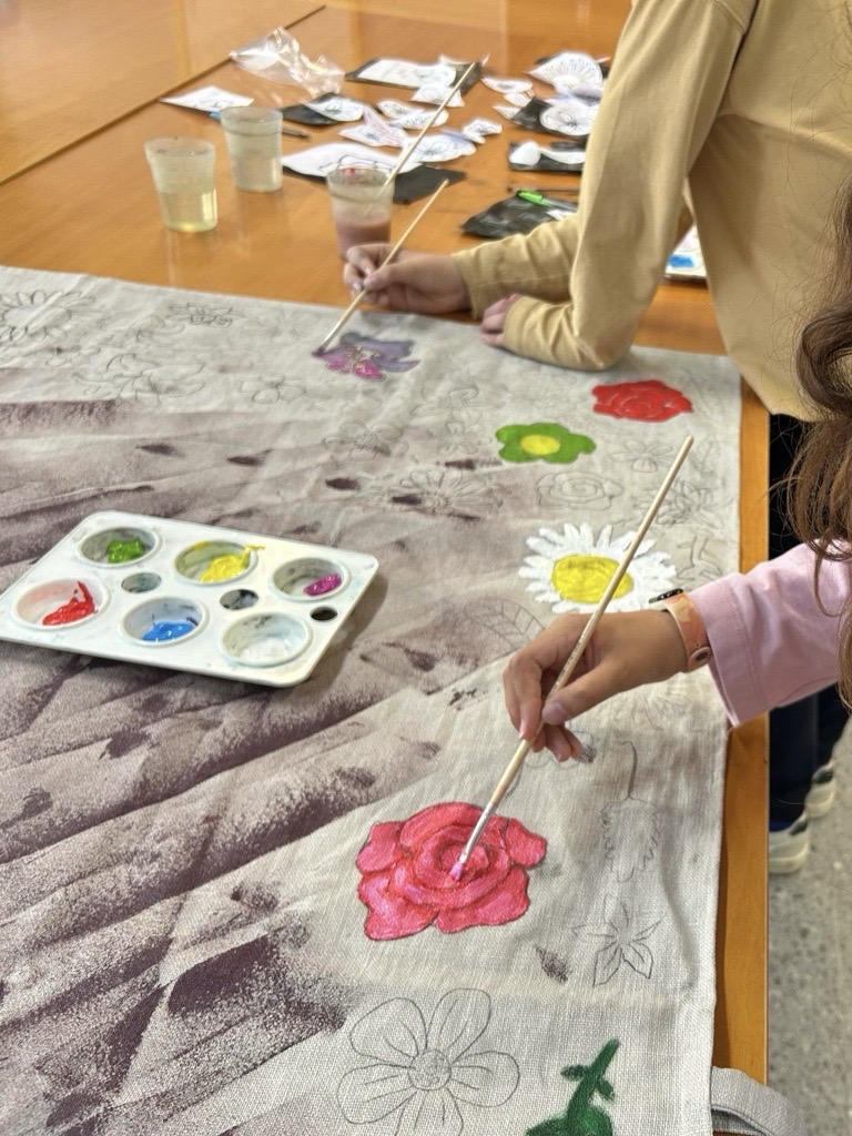 Hem utilitzat paper de calco per a dibuixar les flors i pintura acrílica per a decorar-les. El resultat és una obra d’art molt bonica i vistosa.