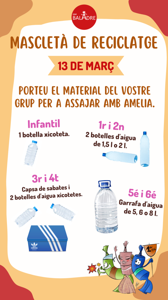 Recordeu que els xiquets i xiquetes necessiten el seu material per a assajar amb Amelia.