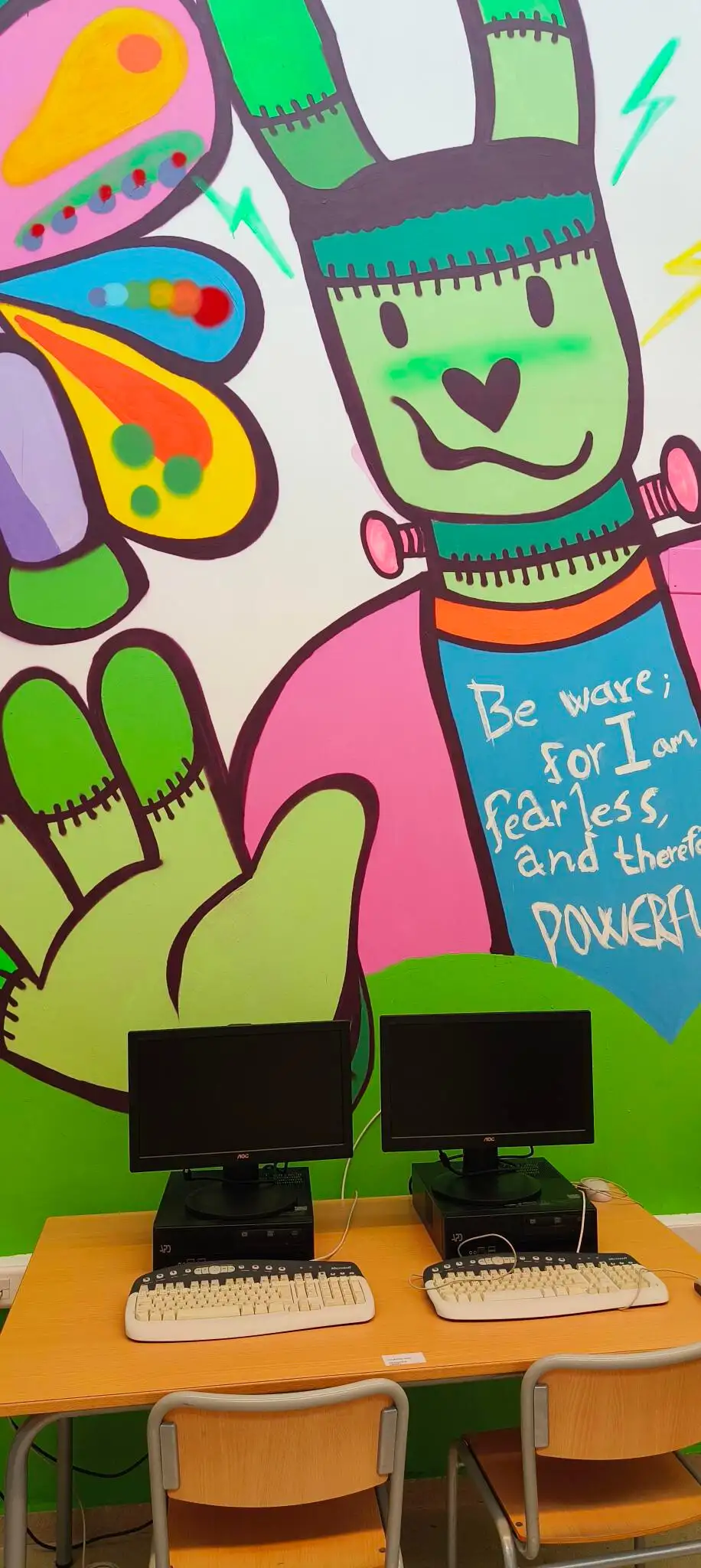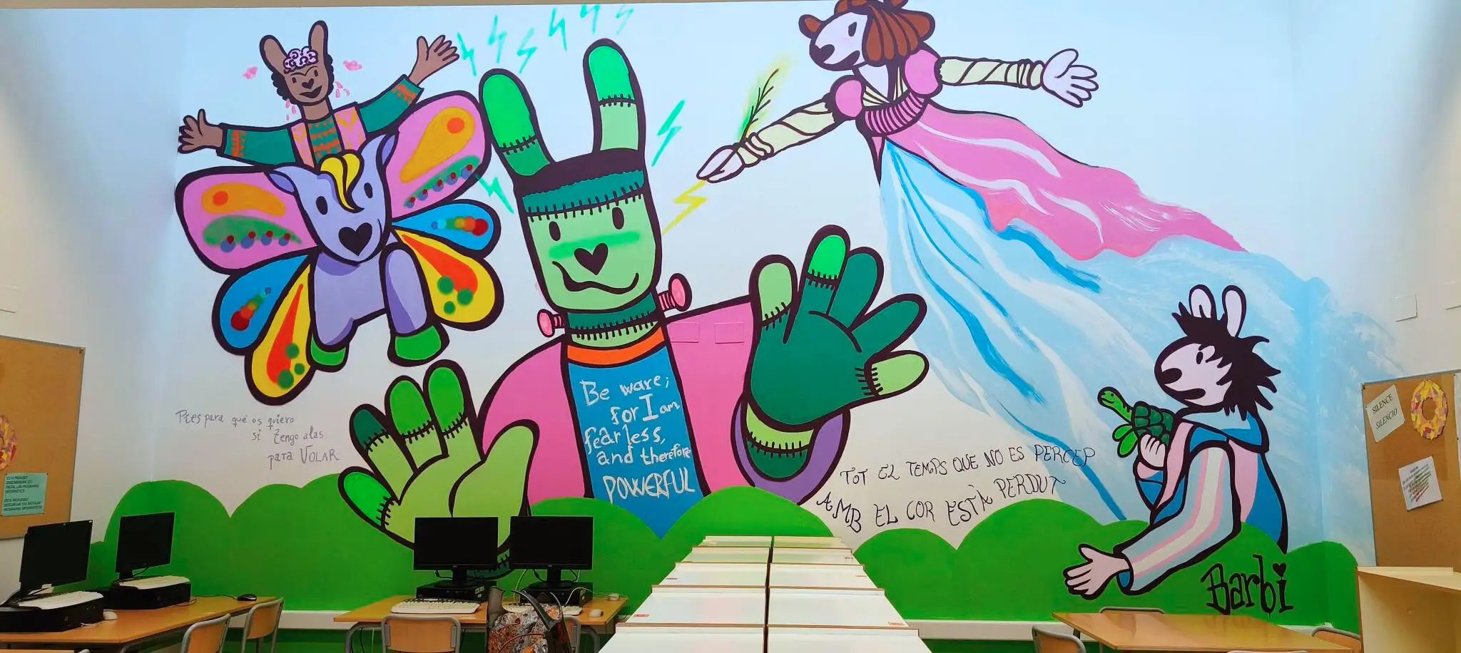 La vertiente humanitaria es igualmente relevante. El centro colabora con Cruz Roja, Amnistía Internacional y otras ONG y organiza mercadillos solidarios que recogen fondos para diversos proyectos. Al mismo tiempo, los departamentos de plástica y los ciclos formativos aportan su propio sello con talleres de moda sostenible, elaboración de jabones y perfumes, espacios expositivos e iniciativas creativas que conectan el aprendizaje con competencias reales y tangibles. El arte mural también forma parte de esta identidad: desde la intervención del artista La Barbie en la biblioteca hasta murales vinculados a proyectos de la UPV, las paredes del centro hablan, educan e inspiran.