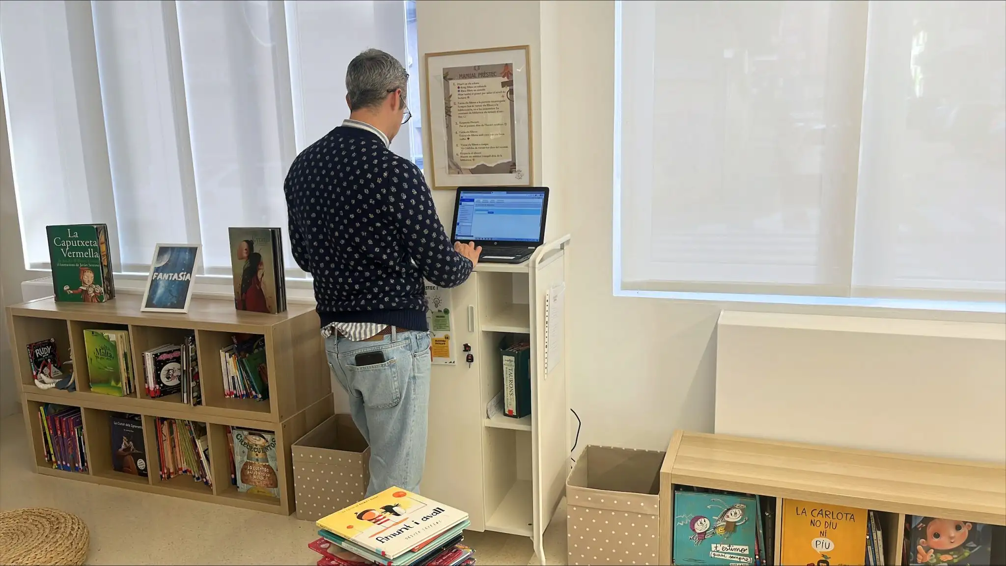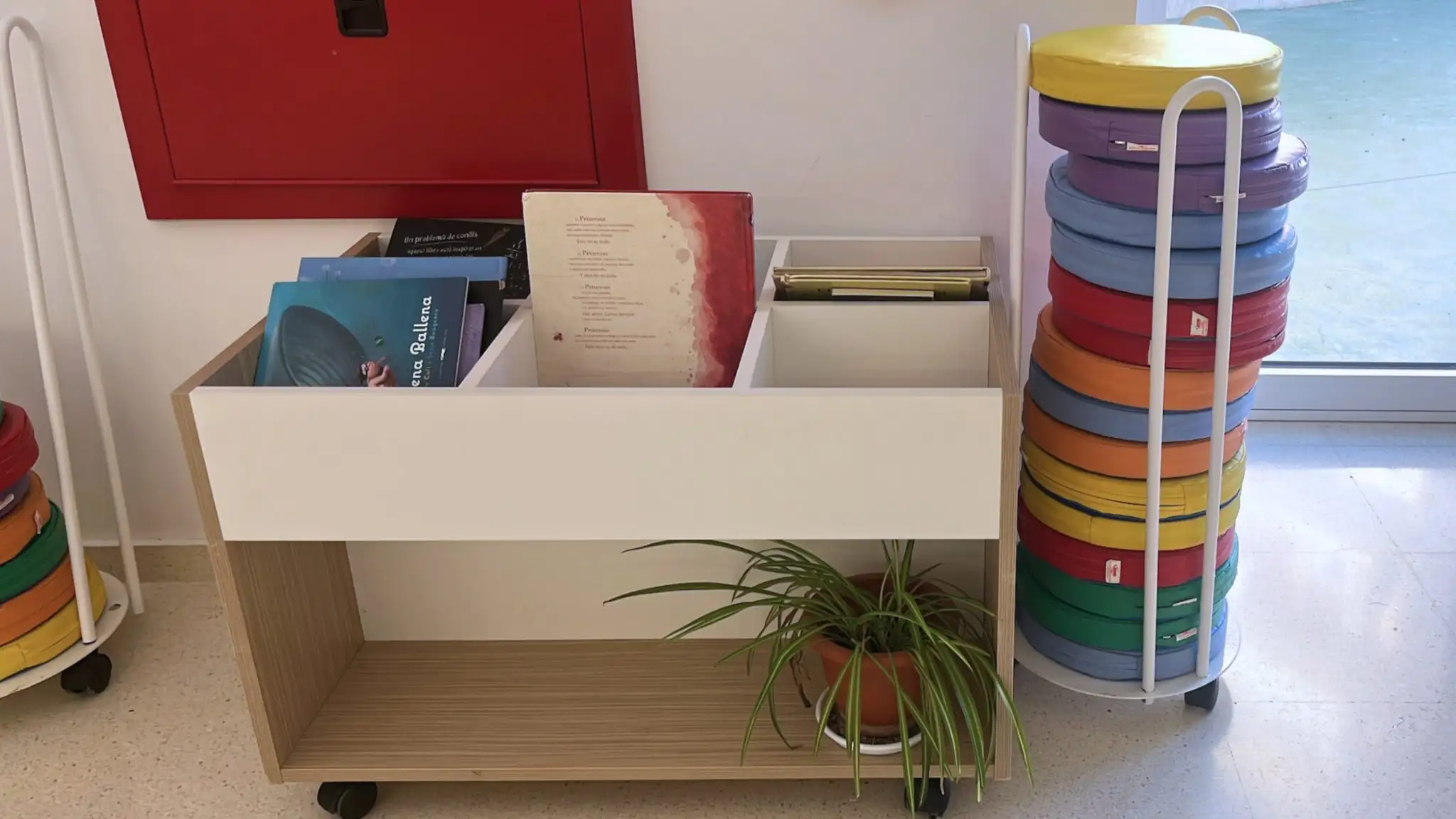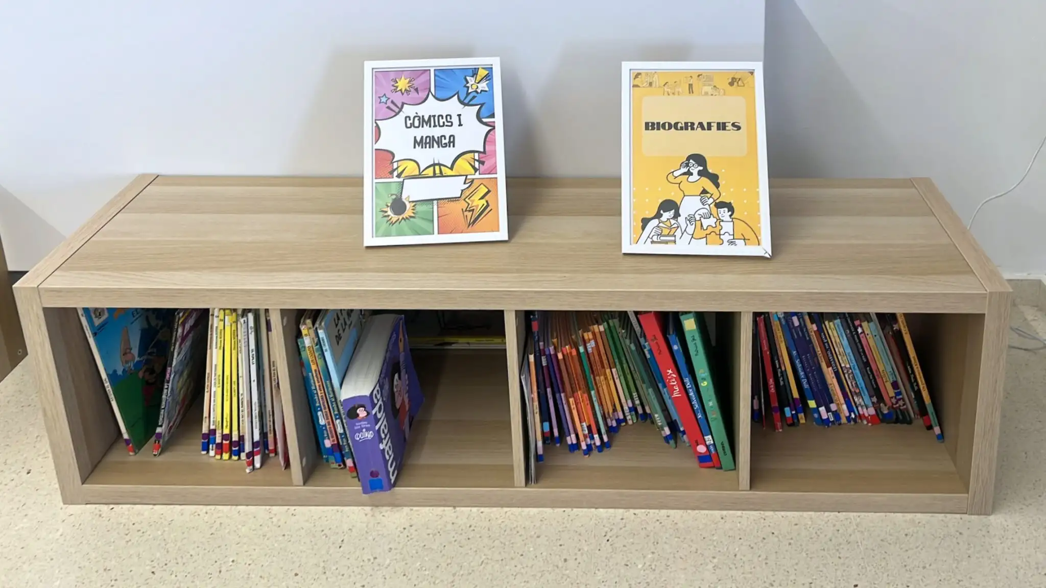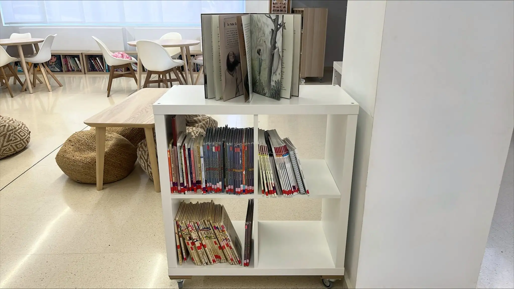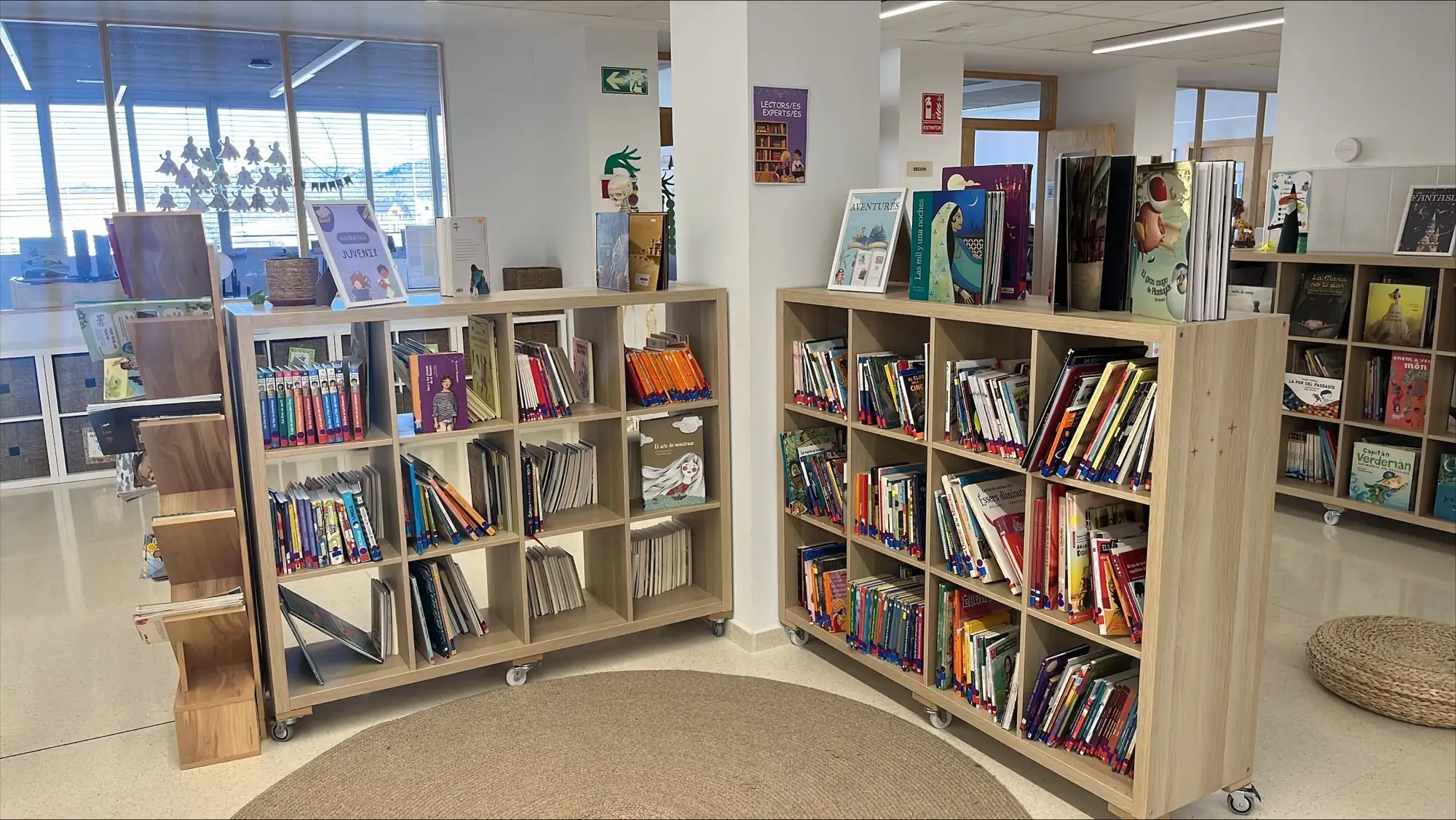 La biblioteca del centre ha experimentat, en els últims anys, una transformació profunda tant des del punt de vista físic com metodològic. A nivell d’espai, hem treballat per crear un ambient acollidor, obert i flexible, que convida espontàniament a llegir. Progressivament hem anat incorporant mobiliari adaptat a les diferents edats i necessitats: prestatgeries accessibles, taules de treball cooperatiu, cadires còmodes i pufs que permeten postures de lectura més relaxades. Enguany hem fet un pas més amb la creació d’una biblioteca mòbil que facilita l’ús dels llibres en diferents espais del centre, així com una taula de pícnic que possibilita sessions de lectura a l’aire lliure. Pròximament, habilitarem un racó amb estoretes i il·luminació LED per generar un ambient íntim, tranquil i motivador.