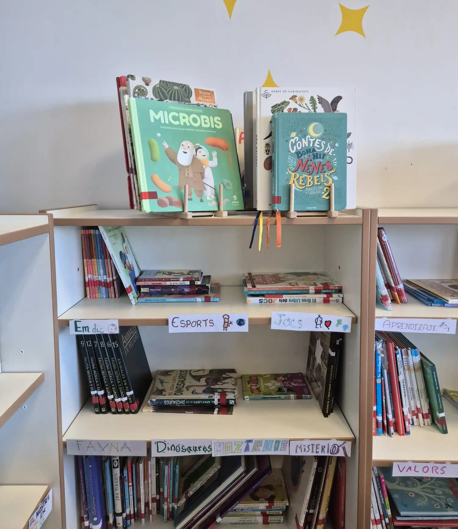 Pel que fa al fons bibliogràfic, renovem anualment els llibres per cicles, ampliem les biblioteques d’aula i rebem aportacions de la biblioteca municipal. Som conscients, però, que encara hi ha molts exemplars antics o poc atractius que cal substituir per títols actuals, visuals i adaptats als interessos del nostre alumnat. Paral·lelament, estem dissenyant un sistema de catalogació visual amb colors i símbols, perquè l’alumnat puga localitzar de manera autònoma els llibres i aprenga a cuidar-los i tornar-los.