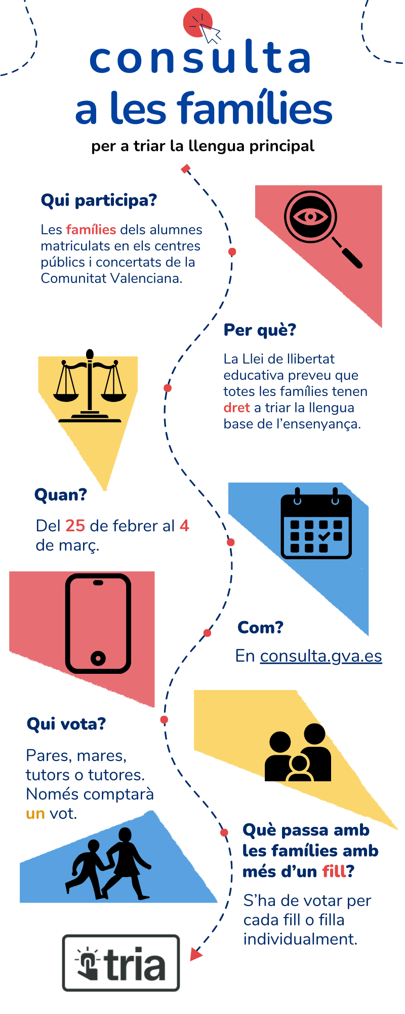 - ORDE 2/2025, de 7 de febrer, de la Conselleria d’Educació, Cultura, Universitats i Ocupació, per la qual es regula i convoca el procediment de consulta als representants legals de l’alumnat per a triar la llengua base aplicable a partir del curs escolar 2025-2026, de conformitat amb el que establix la disposició transitòria segona de la Llei 1/2024, de 27 de juny, de la Generalitat, per la qual es regula la llibertat educativa.