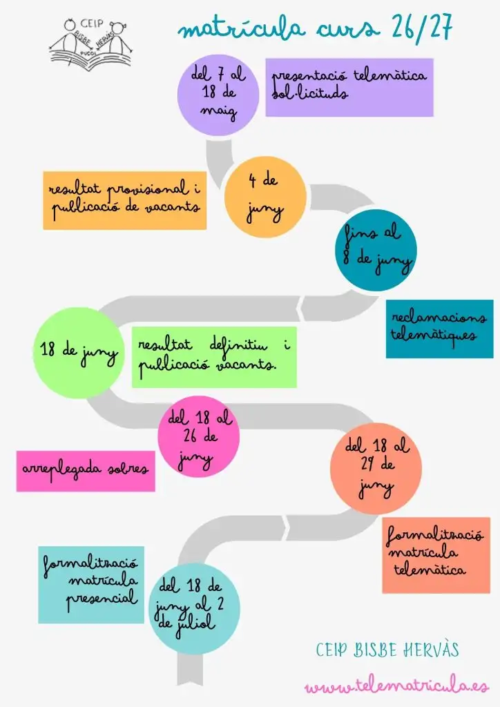 ➕▶️ En les dates previstes d’admissió habilitarem un espai web concret amb la informació sobre la matriculació i la tramitació electrònica del procediment d’admissió que s’activarà el dia que s’inicien els procediments.