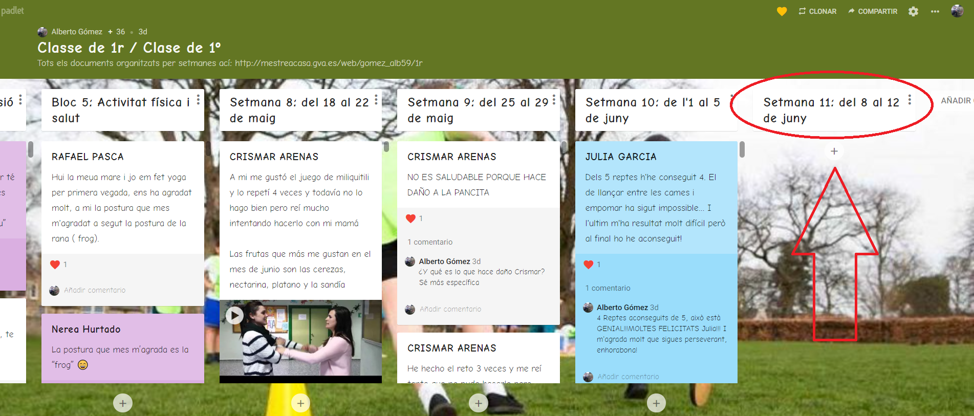 A partir de ahora escribiremos las actividades fijándonos en una nueva columna por semanas, dejando de lado los bloques para las actividades previas. Con la siguiente imagen veréis más claro dónde escribir a partir de ahora: