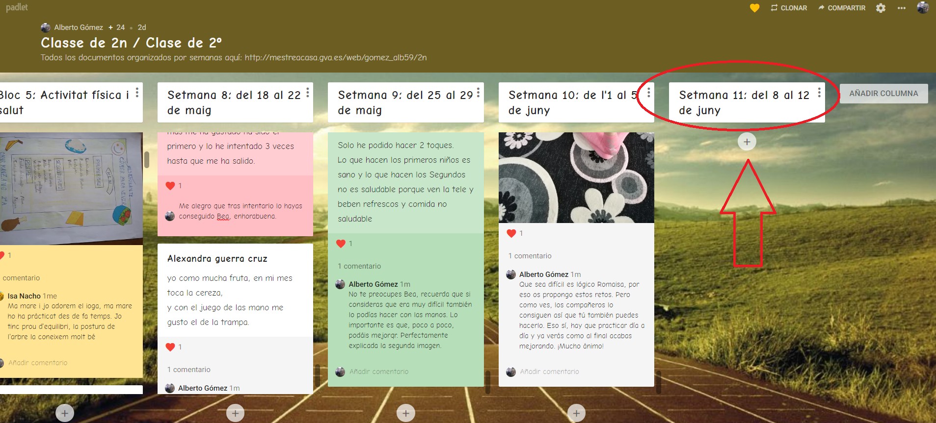 A partir de ahora escribiremos las actividades fijándonos en una nueva columna por semanas. Con la siguiente imagen veréis más claro dónde escribir a partir de ahora: