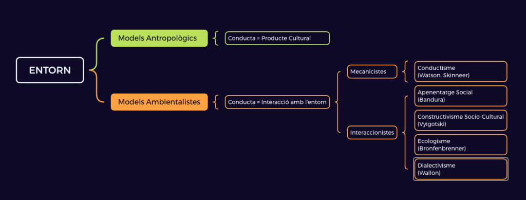 Plantegen un major grau de determinació ambiental al nostre comportament i desenvolupament (Watson, 1925; Skinner, 1938). No som lliures a l’hora d’actuar o adquirir habilitat, sinó que som el fruit sense alternativa possible del nostre entorn de desenvolupament.