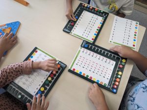 Us anirem contant alguns dels que anem fent. De moment, estem aprofitant la bona dotació didàctica de l’escola en materials manipulatius i jocs de llengua i matemàtiques: blocs multibase, dòminos d’operacions, Logico Piccolo o jocs de timeline que han d’ordenar.
