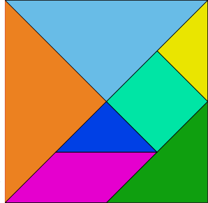 Realment el Tangram el podeu pintar amb els colors que vulgueu. Però és millor que el pinteu com el model que vos done per a que després vos resulte més fàcil realitzar les formes que us vaig a proposar.