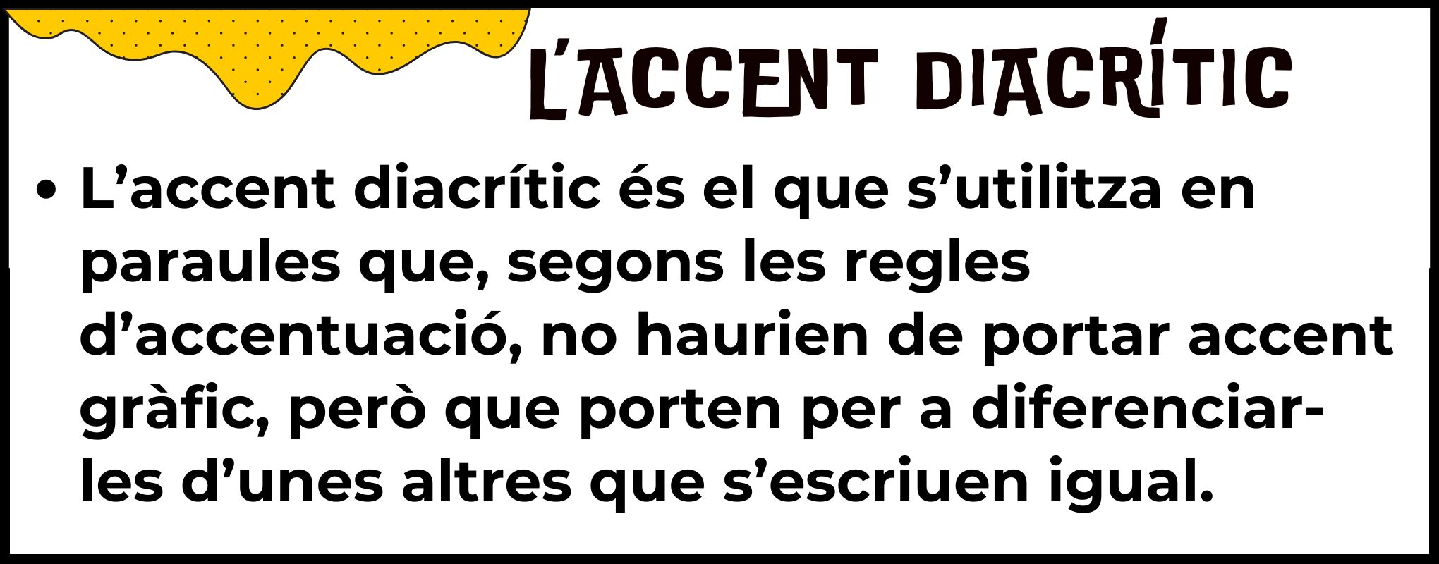 ![]() ![]() | ✔️LA DIÈRESI ✔️L’ACCENT DIACRÍTIC ✏️ Definim els conceptes a la llibreta. ![]() ✏️ Realitzem i corregim dictats. Realitzem les activitats proposades. 📌 ACTIVITATS ORALS I LLIBRETA |