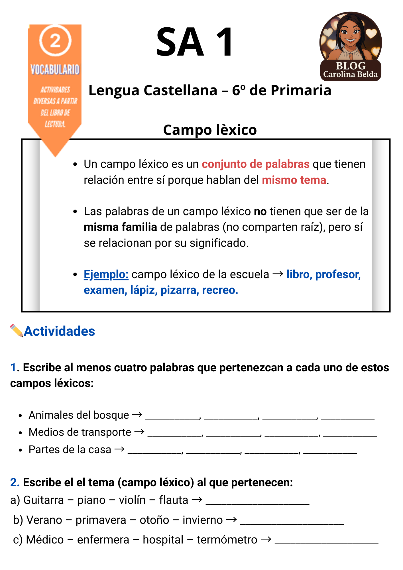 ![]() | ✔️FAMILIA DE PALABRAS ✔️CAMPO LÉXICO ✔️CAMPO SEMÁNTICO 1. Copia la definición de los conceptos en la libreta. 2. Realiza las actividades propuestas. |