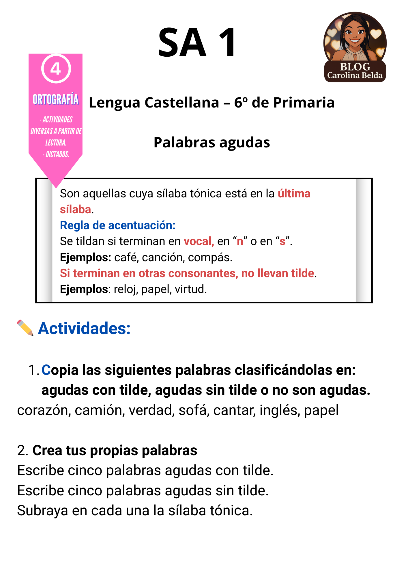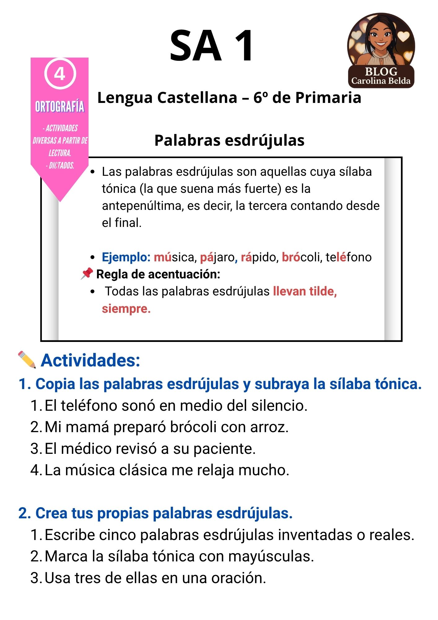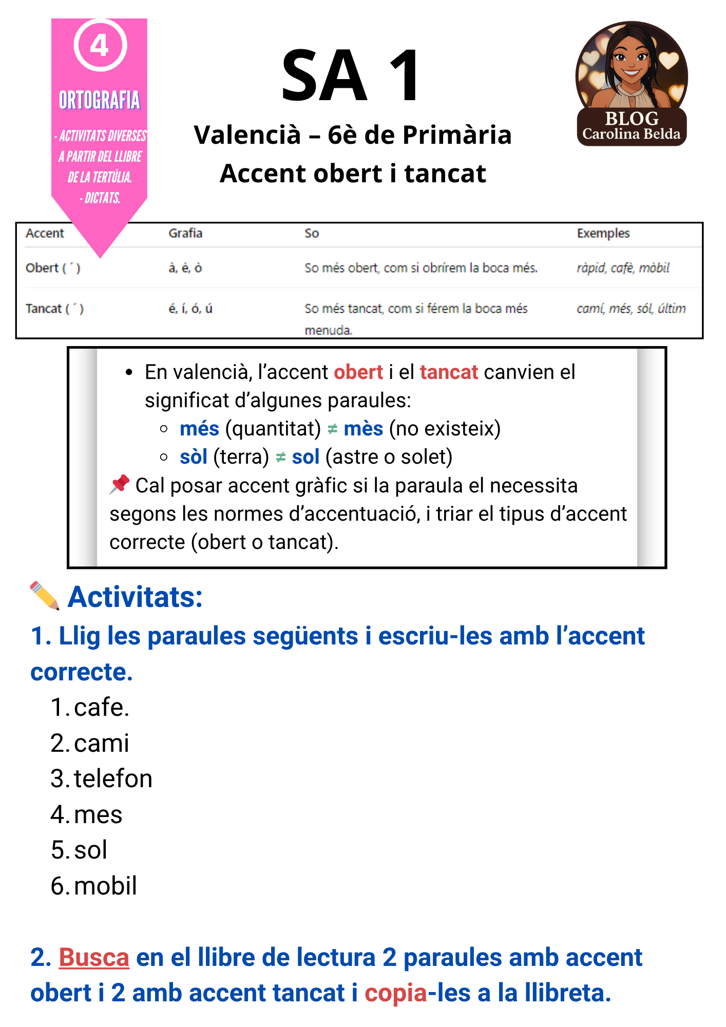![]() | REPASO DE ACENTUACIÓN ✔️PALABRAS AGUDAS. ✔️PALABRAS LLANAS. ✔️PALABRAS ESDRÚJULAS 1. Copia la definición de los conceptos en la libreta. 2. Realiza las actividades propuestas. ✏️ Realizamos y corregimos dictados. ✔️ACCENT OBERT I TANCAT 1. Copia els conceptes a la llibreta. 2. Realitza les activitats proposades. |