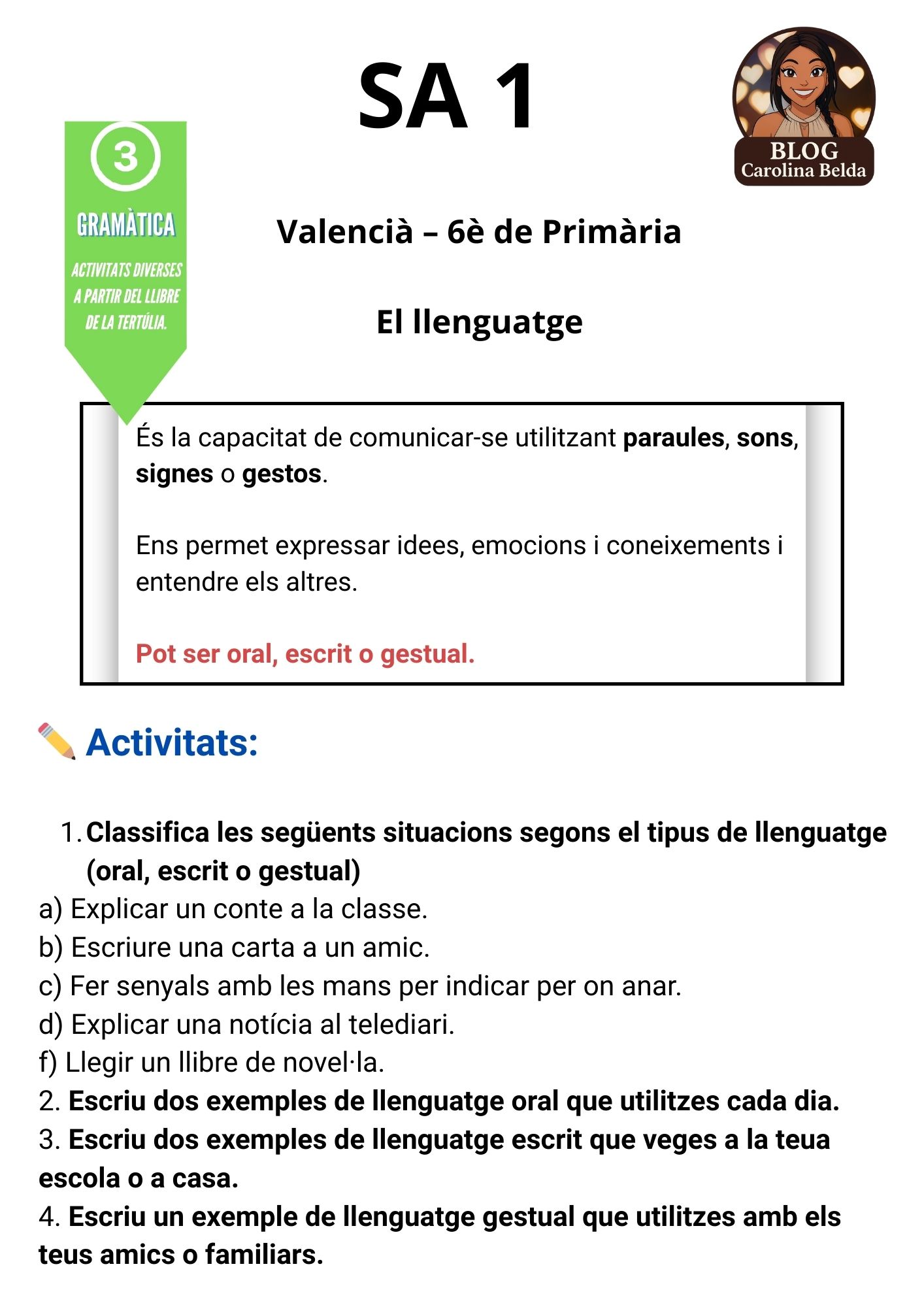 ![]() ![]() | ✔️EL LLENGUATGE ✔️ LES LLENGÜES 1. Copia els conceptes a la llibreta. 2. Realitza les activitats proposades. |