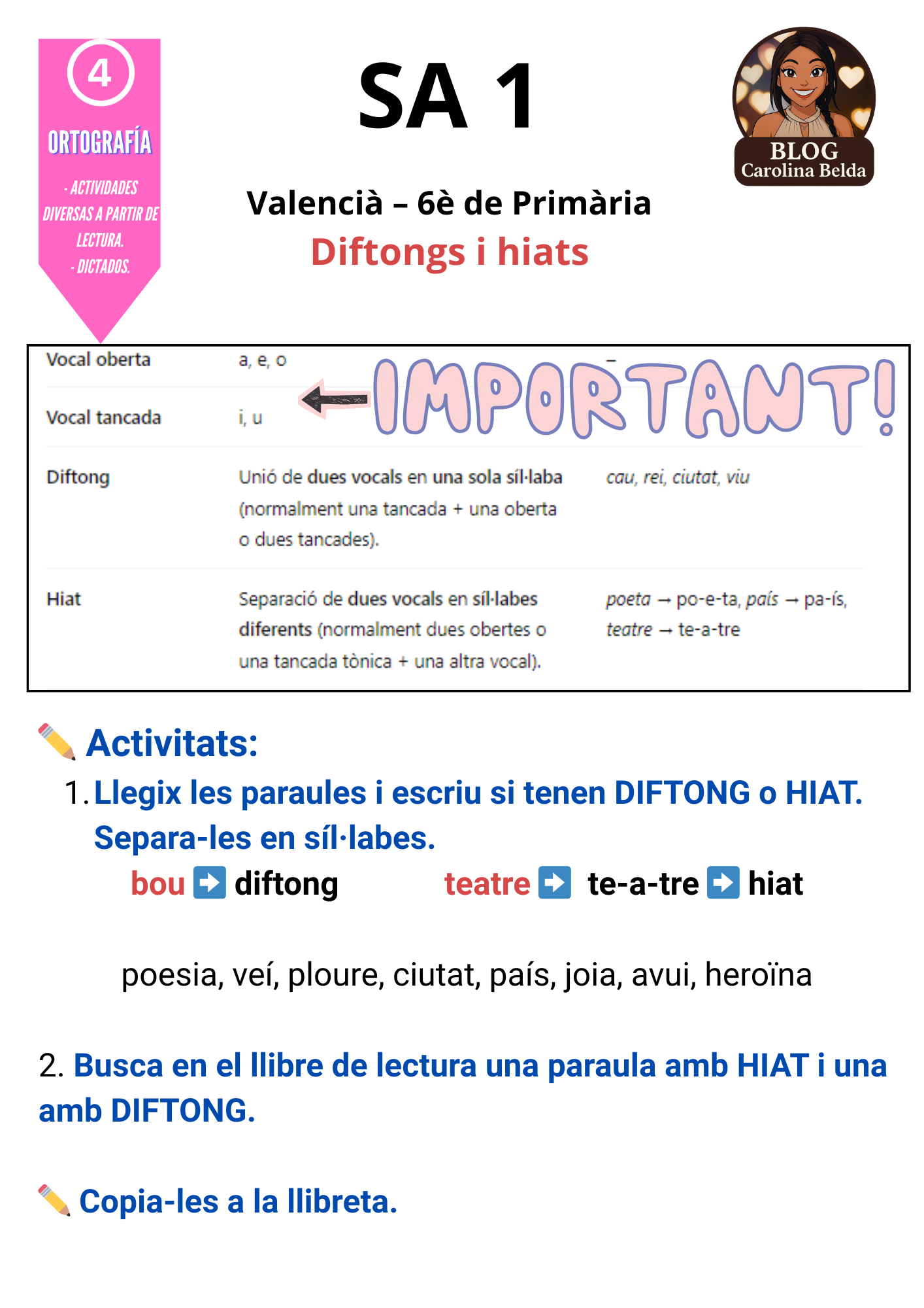 ![]() ![]() | ✔️ACCENTUACIÓ DE DIFTONGS I HIATS 📺 1. Copia els conceptes a la llibreta. 2. Realitza les activitats proposades. ✔️ACCENTUACIÓ DE TRIFTONGS 1. Copia els conceptes a la llibreta. 2. Realitza les activitats proposades. ✏️ Realitzem i corregim dictats. Realitzem les activitats proposades. |