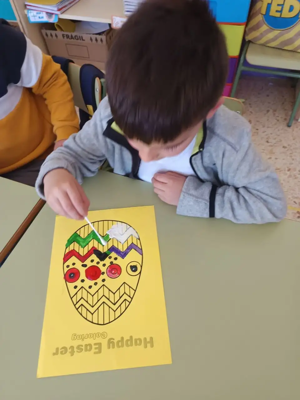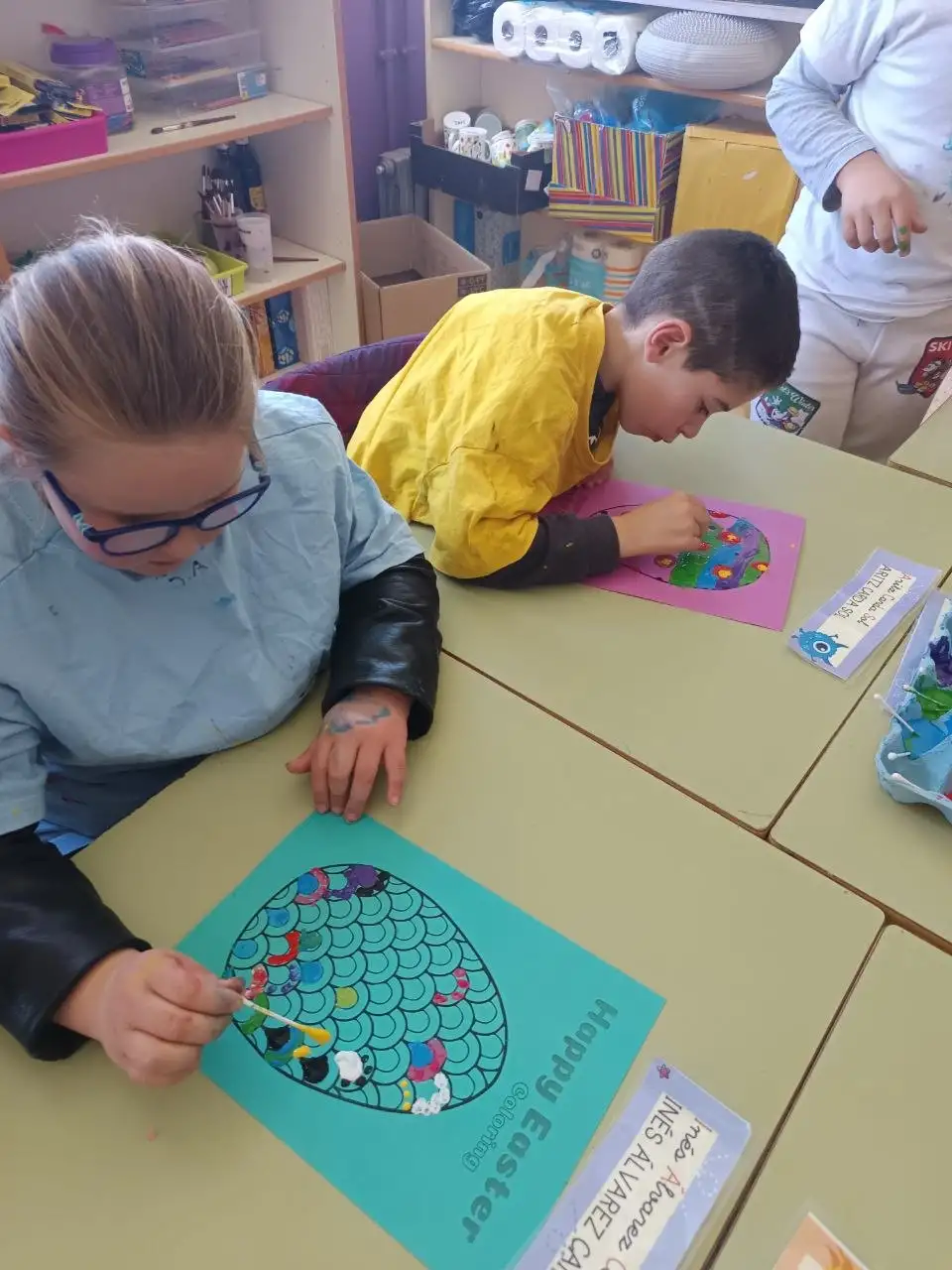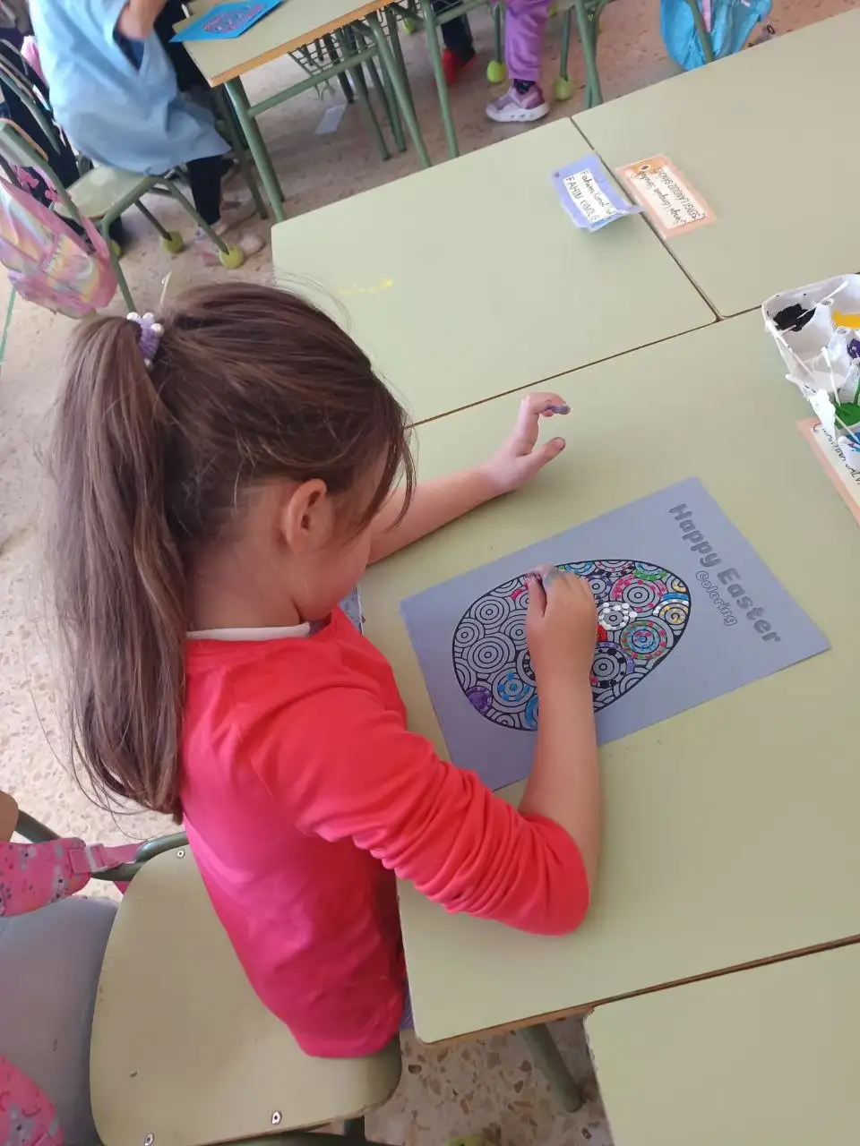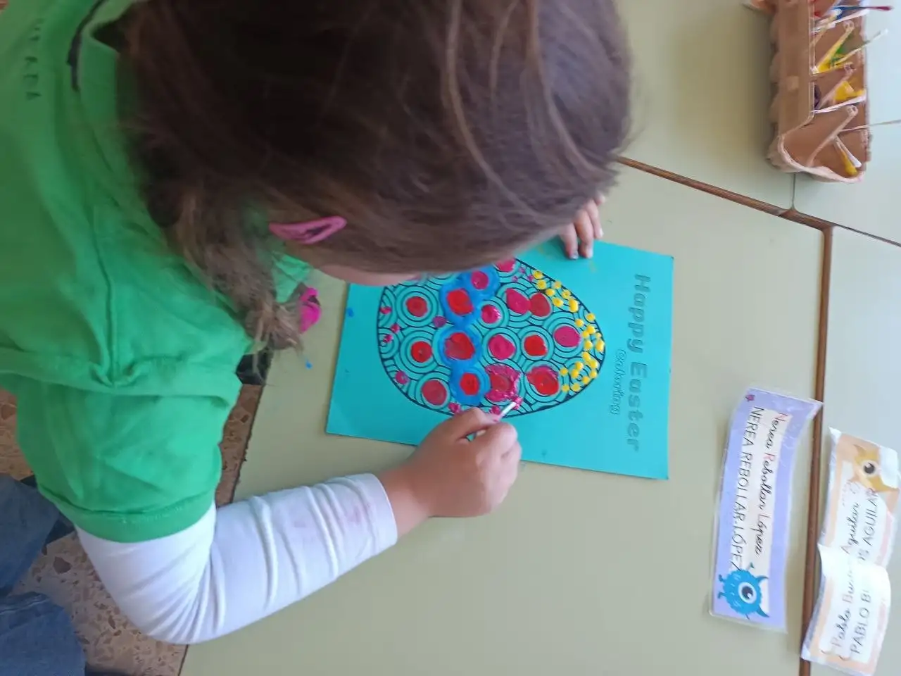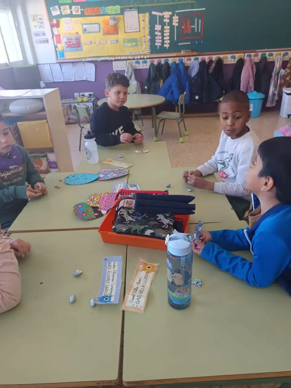 Durant la setmana cultural hem fet una activitat de recerca d’ous de pasqua. En primer lloc, els vam pintar a la classe amb colors molts divertits. Després, Alba i Ruth van amagar els nostres ous pels patis de l’escola i nosaltres havíem de trobar-los entre tots. Finalment, vam conseguir trobar tots els ous de pasqua i vam gaudir del nostre premi: ouets de xocolata!!!!!!! Boníssims!