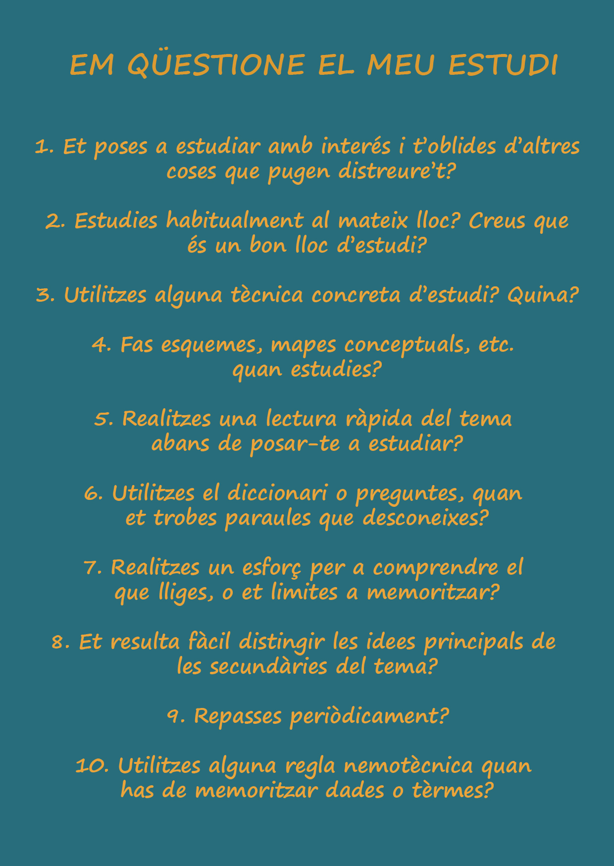 Us presento una graella de preguntes, que treballarem a classe, per a que us plantegeu com esteu estudiant actualment: