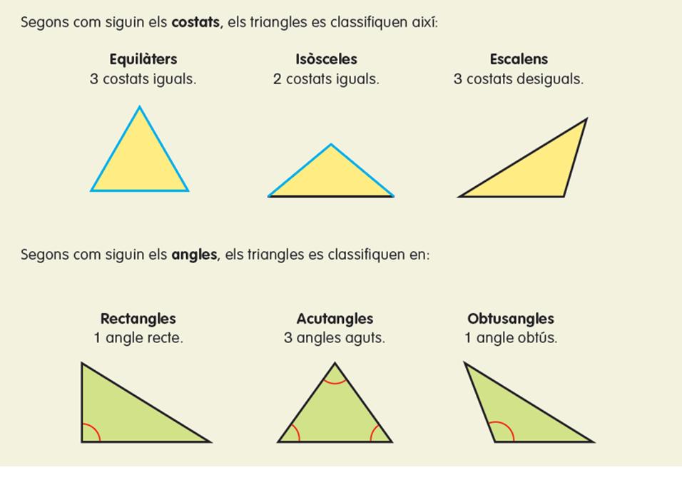 classificació dels triángles pels costats i els angles