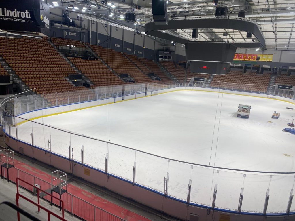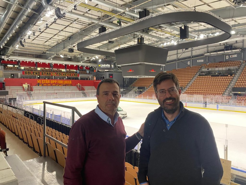 Cap a les 11 del matí hem anat a dinar a un restaurant situat dins del Coop Norrbotten Arena, l’estadi local d’hoquei sobre gel, ubicat al mateix polígon industrial on es troba l’empresa. Després de dinar, Fredrik i Linus ens han fet una visita guiada per l’estadi, amb capacitat per a més de 6.000 espectadors. L’hoquei sobre gel és un esport molt popular a Suècia, i l’equip de Luleå és l’actual campió de lliga.