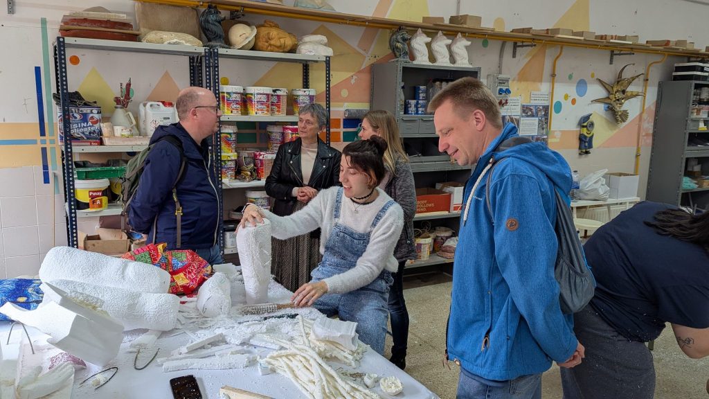 Sin duda, lo que más les sorprendió fue nuestro taller de hogueras, donde descubrieron cómo creamos los ninots para nuestras fiestas. Quedaron encantados con la combinación de arte y formación profesional.