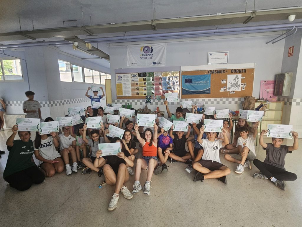 Donem els diplomes com estava previst als cursos 1A,G,E,H,I. L’exposició romandrà oberta al mes de juny i juliol per a que la puguin vore les famílies.