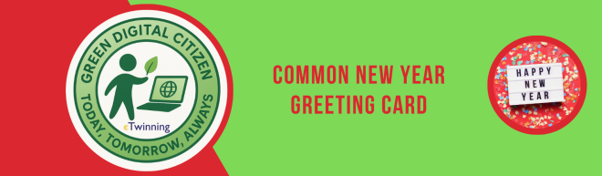 students will create a common online New Year’s cards with the message “Green” using Canva, and we will share the cards with all students, teachers and school staff via the digital platforms used in our schools (e.g. MS Teams, school website…).
