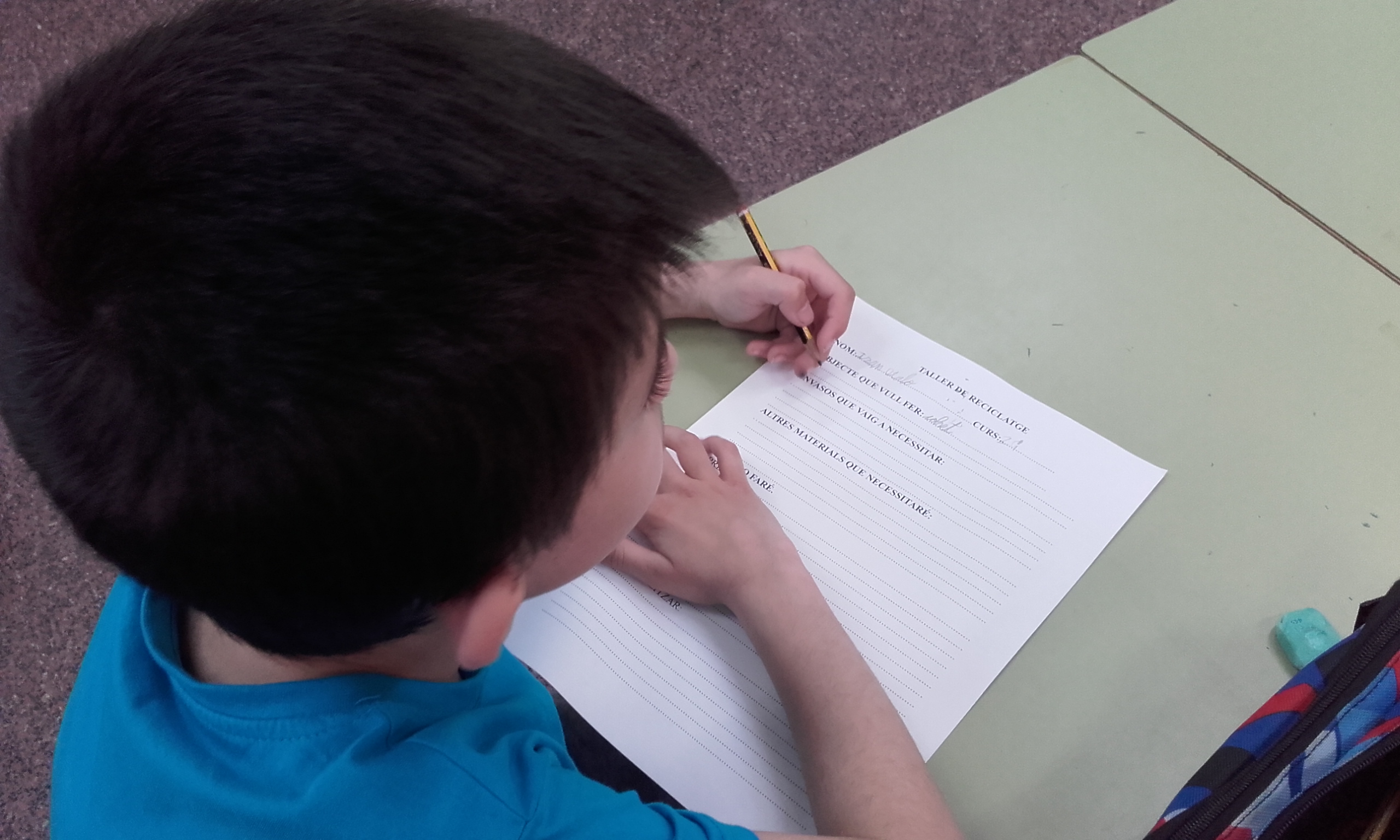 DESPRÉS DE CLASSIFICAR ELS MATERIALS I DE PREPARAR ELS CONTENIDORS, ELABORAREM UNA FITXA EN LA QUE EXPLICABEM QUÉ, EN QUÉ MATERIALS I COM VOLIEN FER EL NOSTRE OBJECTE RECICLAT.