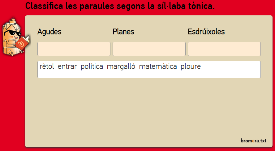 Classifica les paraules en agudes, planes o esdrúixoles.