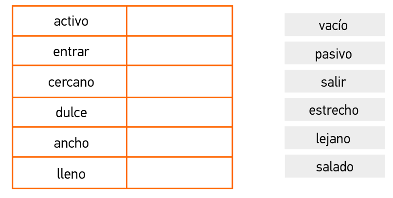 Encuentra las palabras antónimas