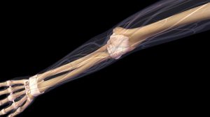 En el brazo, el hueso que encontramos es el húmero. Este hueso articula con la cintura escapular a través de una articulación llamada hombro. Por otra parte, articula con los huesos del antebrazo, el radio y el cúbito, en la articulación del codo.