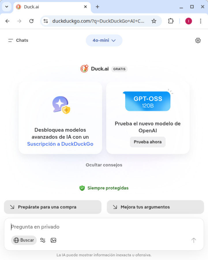 Sabies que el cercador DuckDuckGo també té la seua pròpia Intel·ligència Artificial? 😏