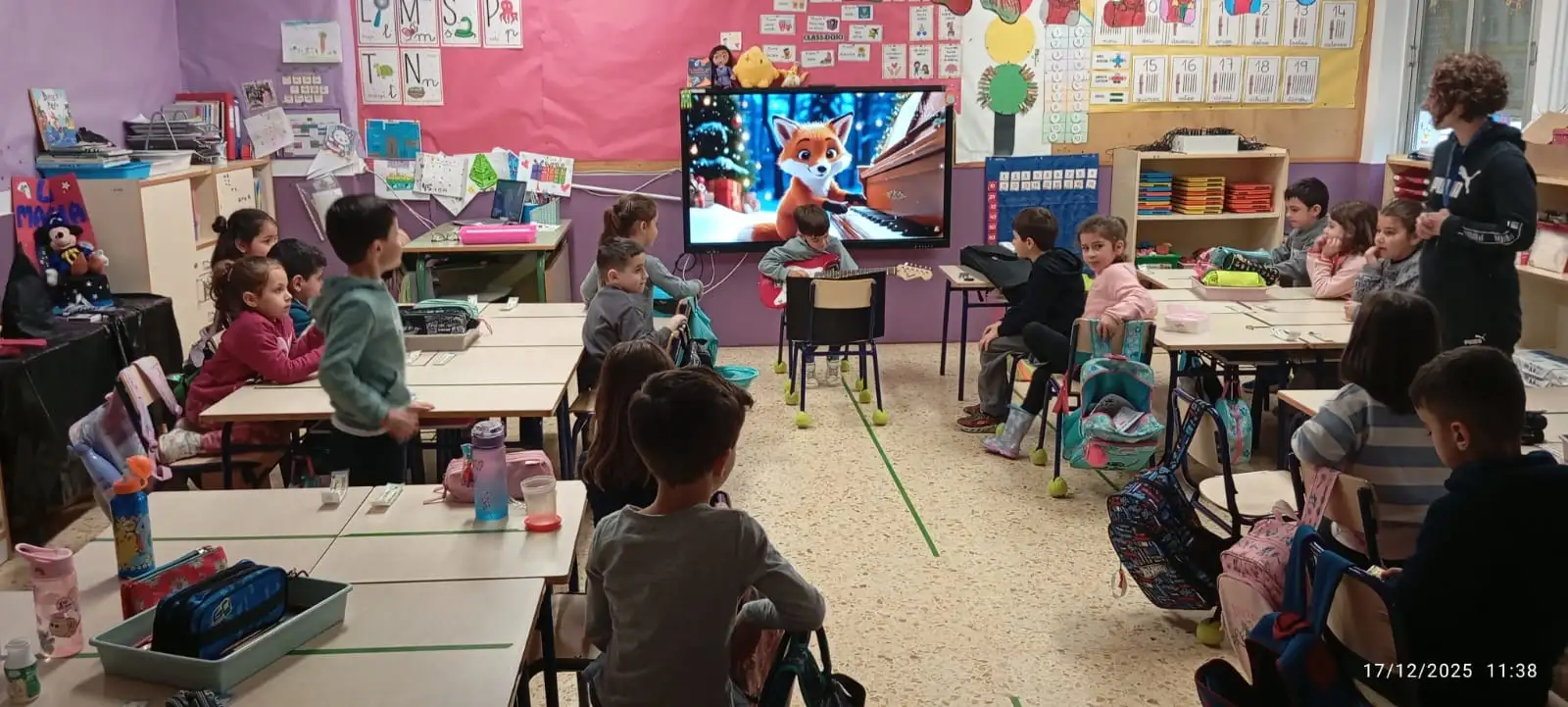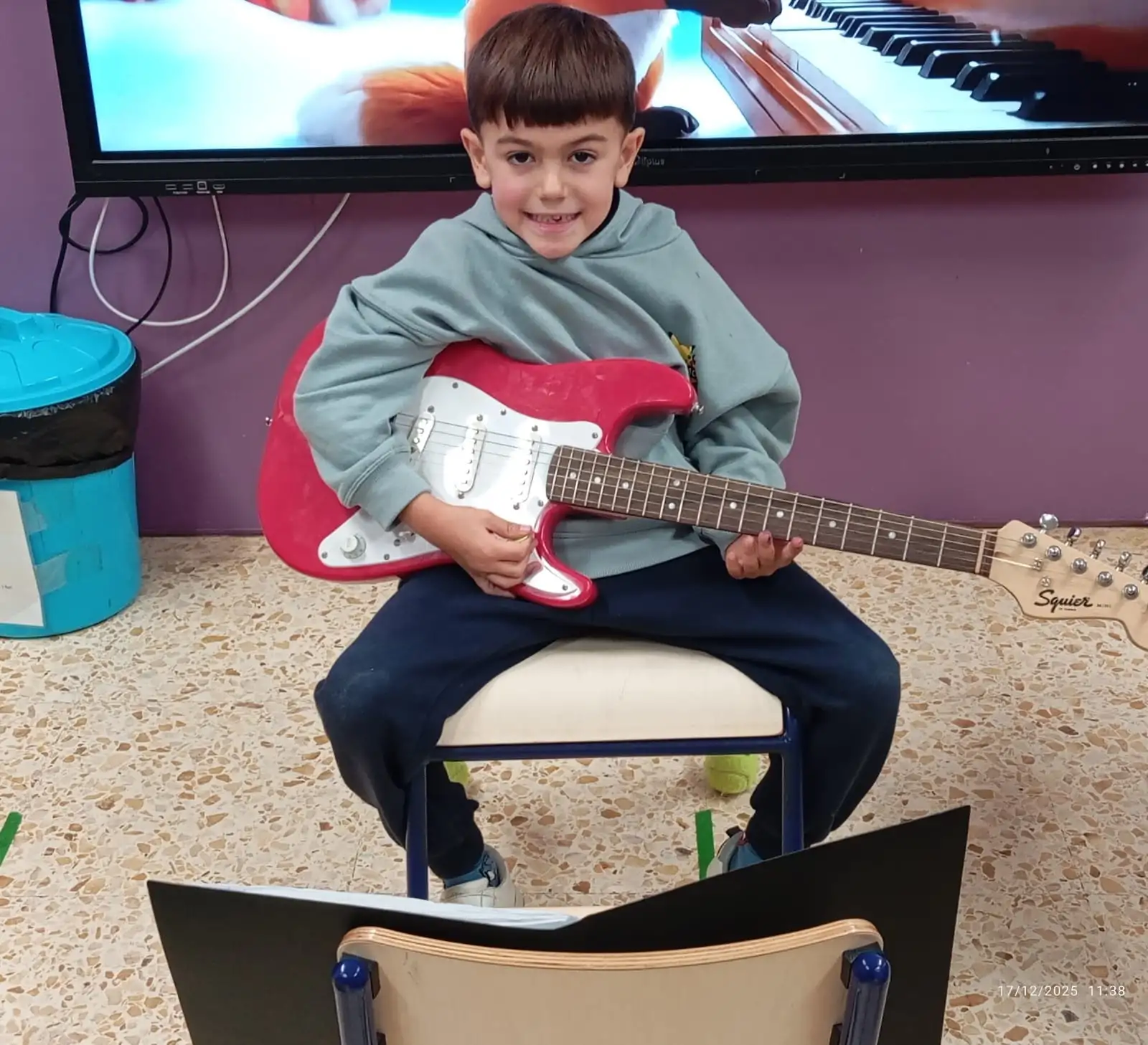 Quina sort hem tingut aquesta setmana! Leo ens ha portat la seua guitarra elèctrica i ens ha ensenyat quins són els seus complements, com es cuida i es neteja. A més, ens ha fet una xicoteta demostració de com sona, tocant-nos una cançó de la seua partitura. Genial Leo, ens he encantat!!