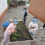 Hoy hemos ido al rincón de hierbas aromáticas que tenemos en nuestro huerto. Nos gusta ver cómo crecen y, además, huelen muy bien.