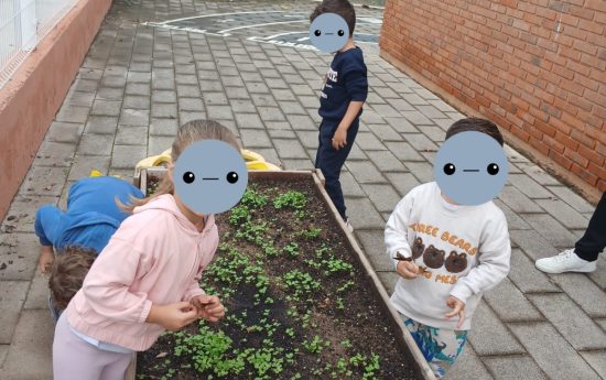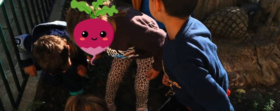 Hoy hemos ido al rincón de hierbas aromáticas que tenemos en nuestro huerto. Nos gusta ver cómo crecen y, además, huelen muy bien. También hemos podido coger algunos rabanitos que ya estaban