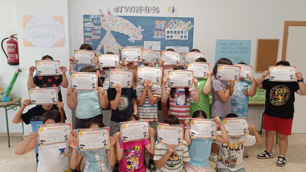 L’alumnat ha treballat de valent i ha gaudit molt amb el projecte eTwinning ‘Wolf’s Intercultural Adventures’. Per aquest motiu han rebut un certificat de participació i una sorpresa.