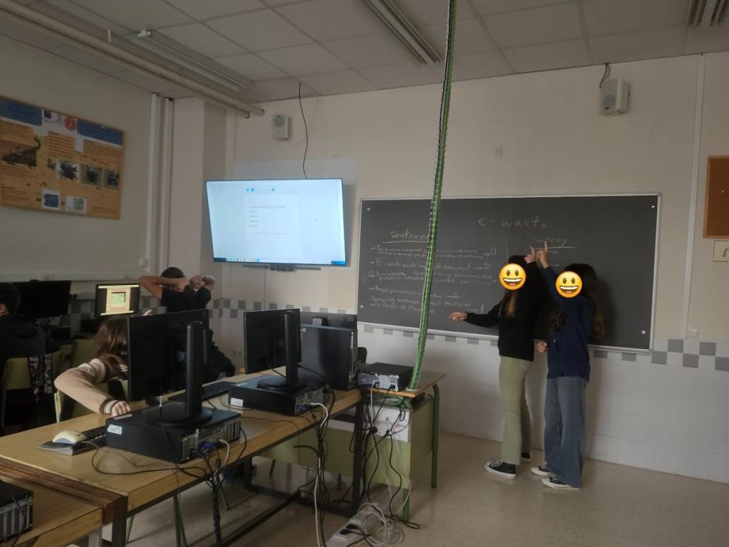 Next, they collaborated with their international partners to design survey questions aimed at understanding how young people in different countries manage their electronic devices once they become obsolete. This process encouraged critical thinking, teamwork, and intercultural dialogue, as students compared ideas and selected the most relevant questions for the joint survey.