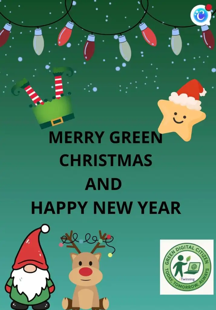 students will create a common online New Year’s cards with the message “Green” using Canva, and we will share the cards with all students, teachers and school staff via the digital platforms used in our schools (e.g. MS Teams, school website…).