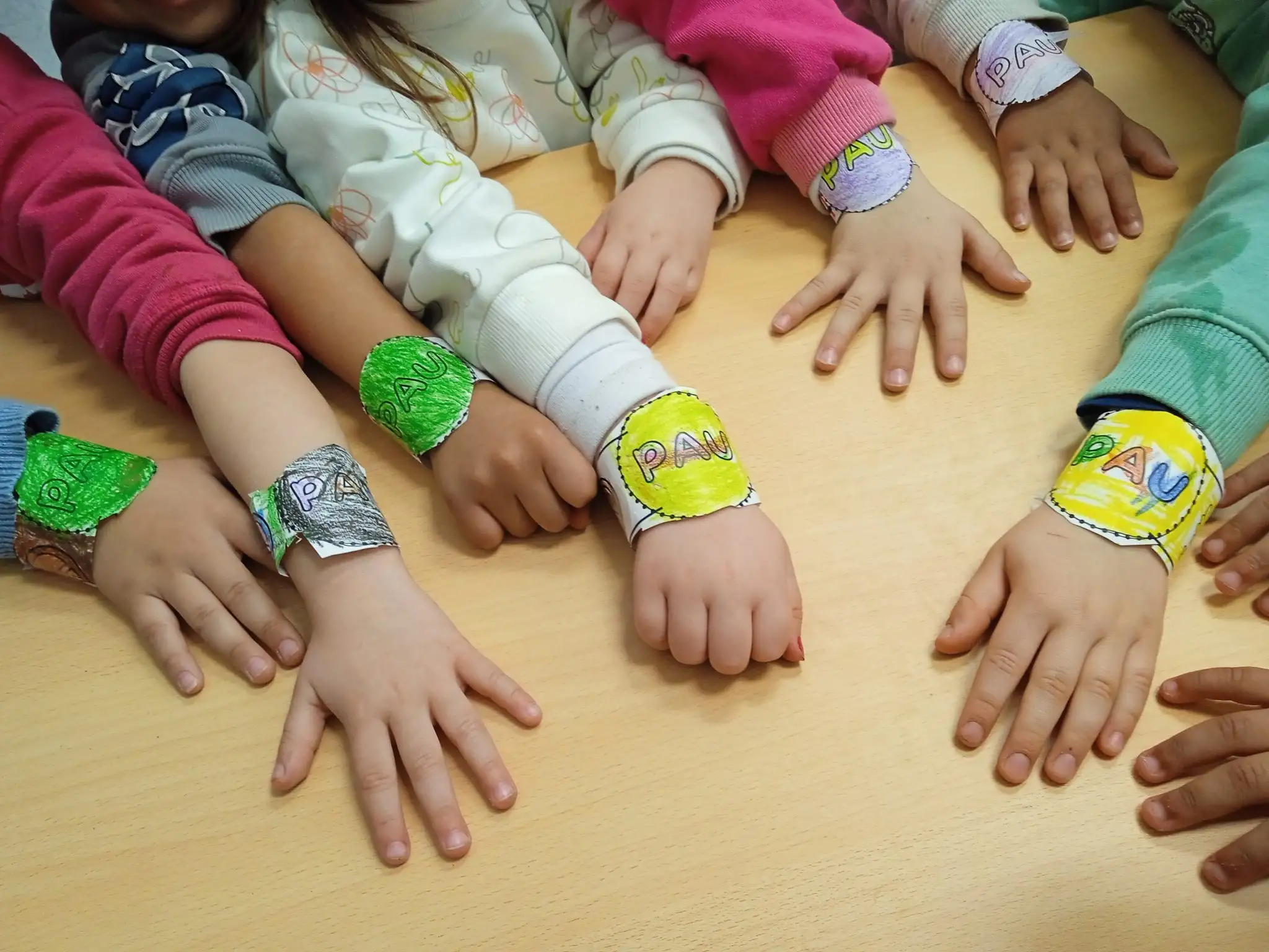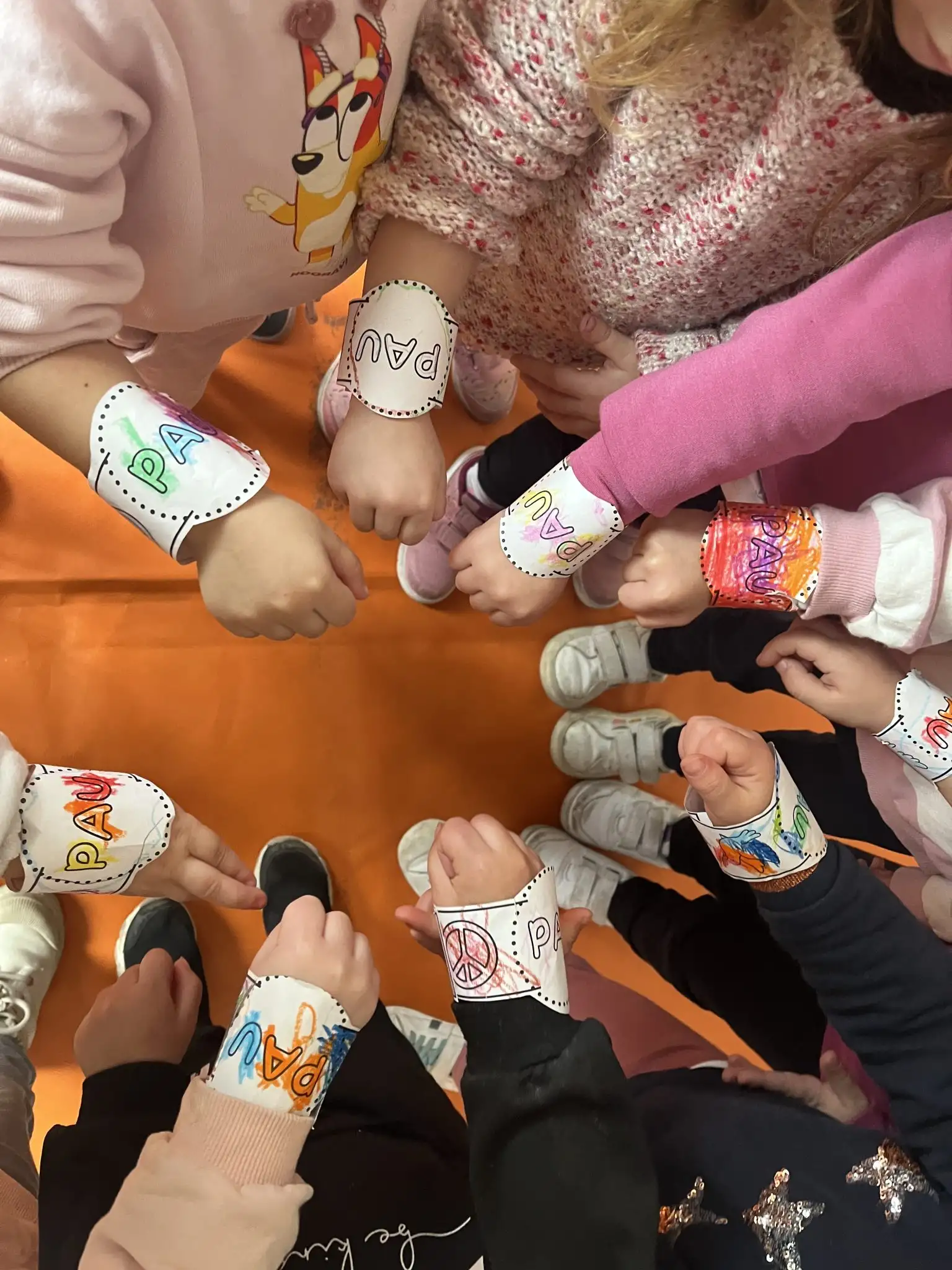 SEMPRE ESTEM PARLANT DE SER AMICS, NO PELEAR-SE I JUGAR TOTS JUNTS. EL DIA DE LA PAU HEM RECORDAT TOTES AQUESTES COSES I HEM FET UN MURAL DE LA PAU I UNA POLSERA MOLT BONICA.